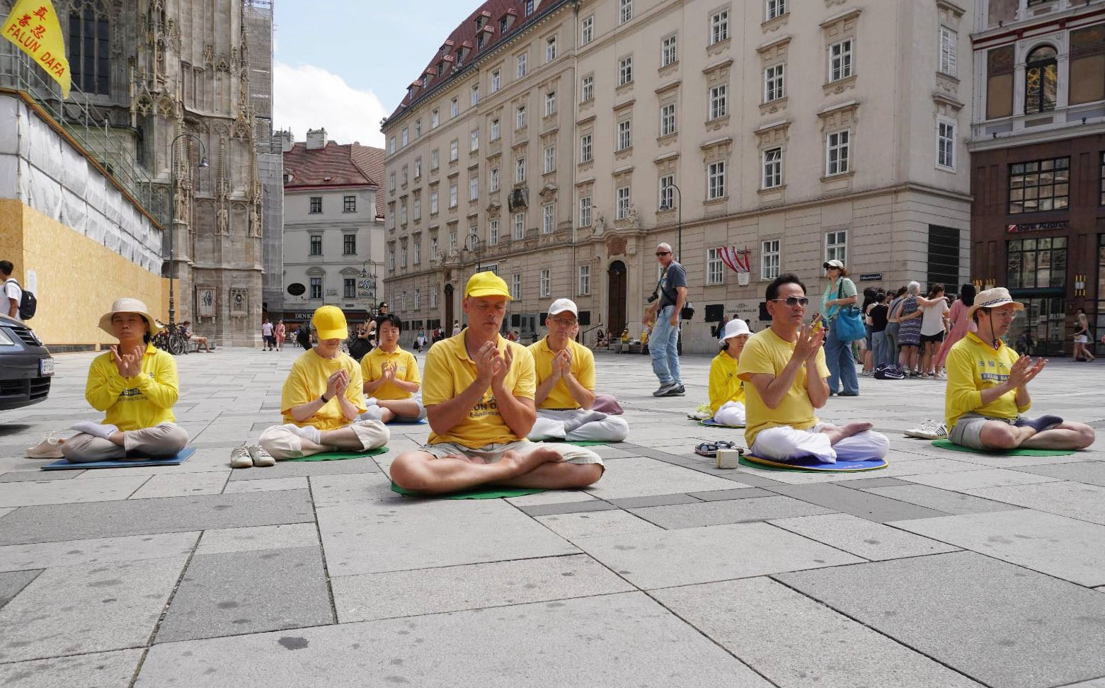 Obeležavajući 25. godišnjicu nastojanja Falun Gong praktikanata da okončaju progon od strane Komunističke partije Kine (KPK), praktikanti su 13. jula 2024. održali miting na Štefansplacu u Beču. Oni su demonstrirali vežbe i postavili su info panoe o 25-godišnjem progonu.