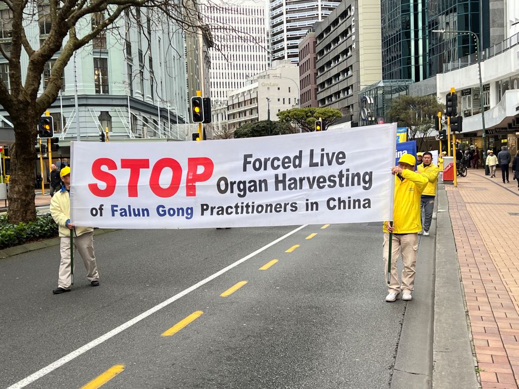 Ispred zgrade parlamenta, praktikanti su opisali kako su bili zlostavljani u Kini zbog svojih uvjerenja, od pritvora i mučenja do prisilne žetve organa. Margo MacVicar, šefica novozelandske Međunarodne koalicije za okončanje zloupotrebe transplantacija u Kini (ETAC), i drugi govornici su pozvali vladu Novog Zelanda da preduzme mjere kako bi zaustavila ove tragedije.