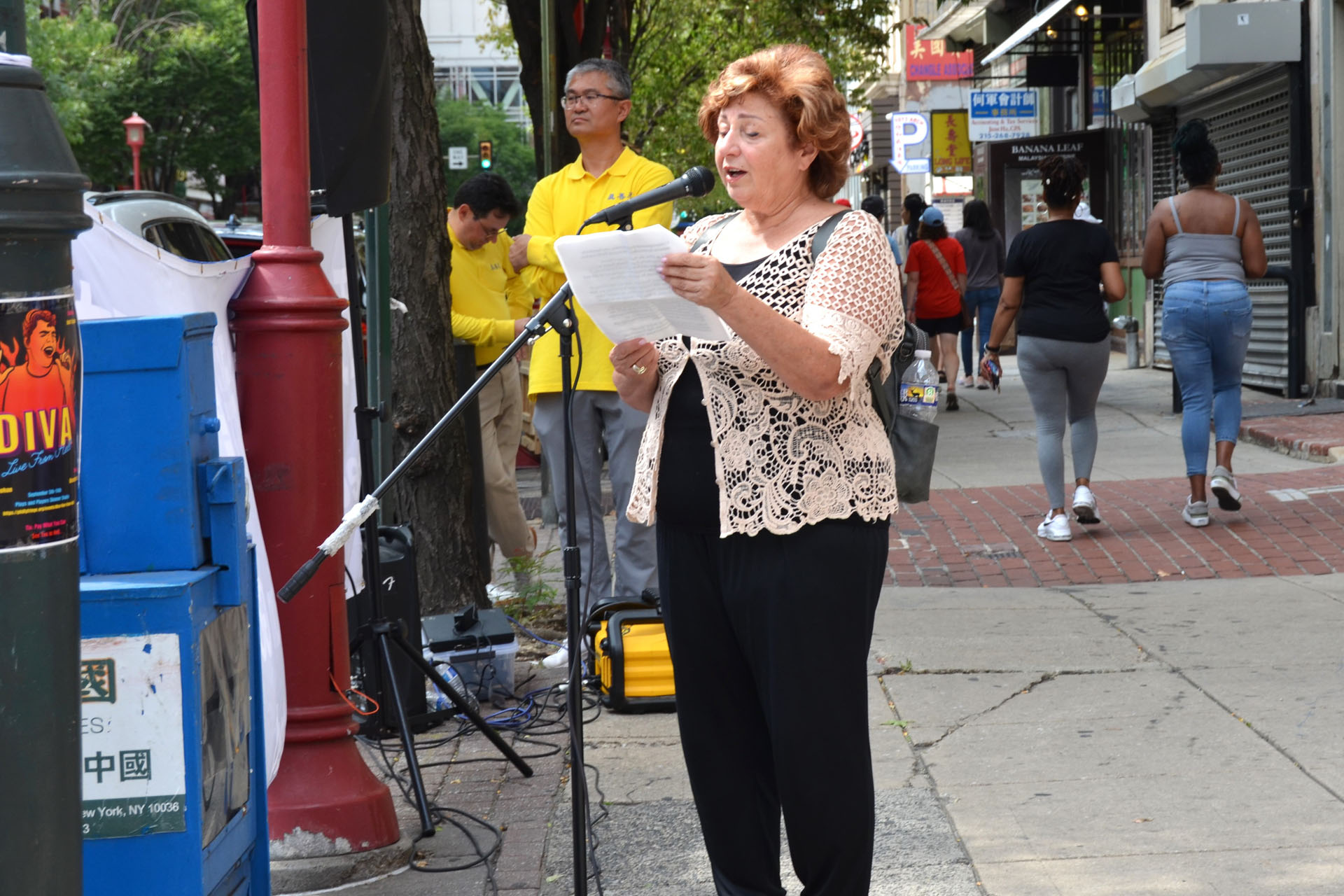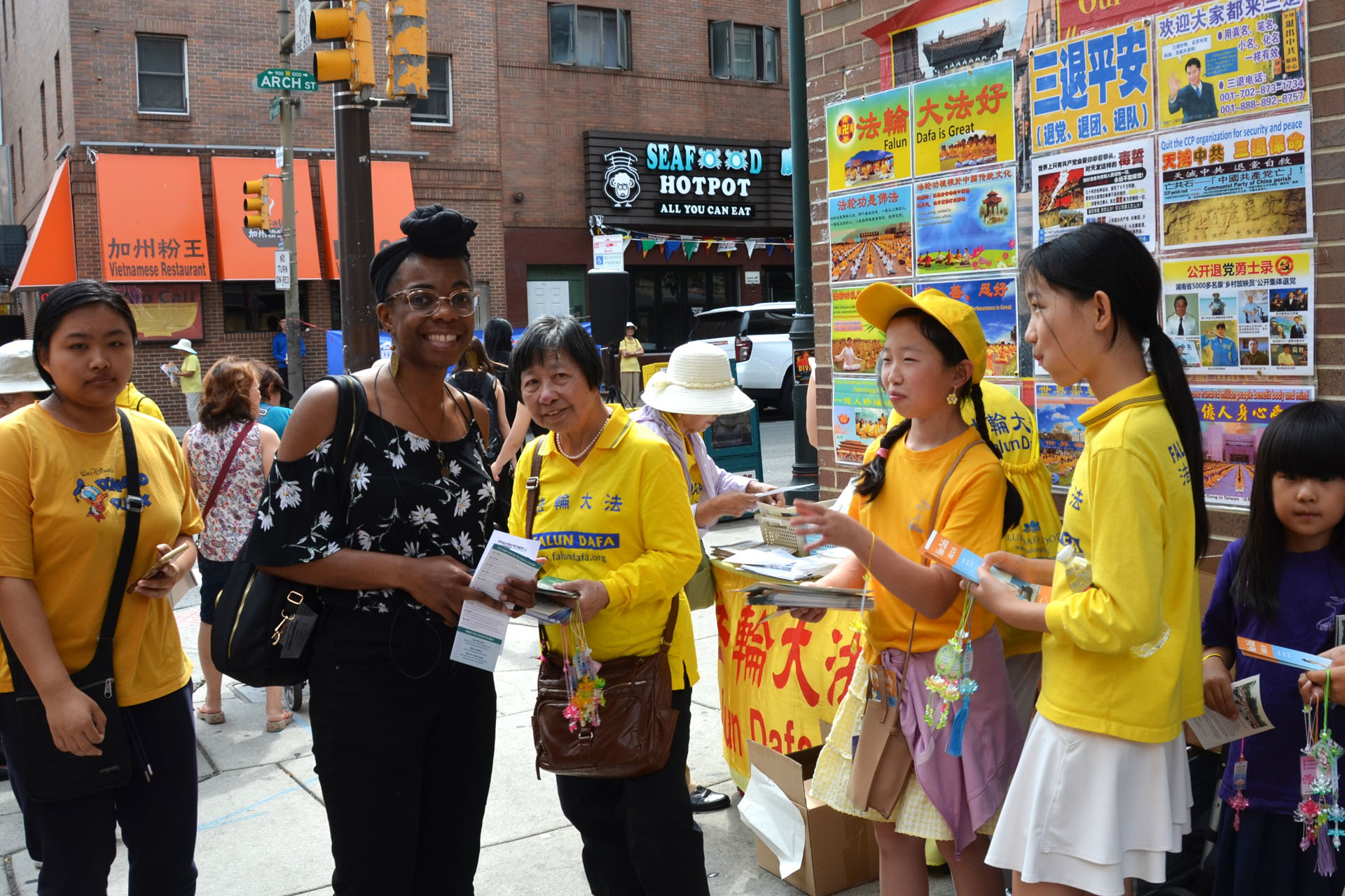 Falun Gong praktikanti održali su skup u kineskoj četvrti Philadelphije 31. kolovoza 2024. kako bi razotkrili brutalni progon Falun Gonga kojeg provodi Komunistička partija Kine (KPK). Skup je istaknuo prisilno vađenje organa zatvorenicima savjesti, kojeg provodi KPK. Govornici su naglasili da je ovo kritično pitanje ne samo za Kineze, već i za Amerikance. Nekoliko prolaznika zahvalilo je praktikantima na njihovim naporima da razotkriju ove zločine i rekli su da će pomoći prenijeti informacije većem broju ljudi.