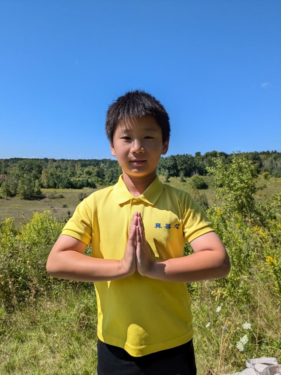 Junren je također prisustvovao ceremoniji podizanja zastave na Svjetski dan Falun Dafa. Nada se da će više ljudi naučiti o dobrobitima prakticiranja Dafa. Junren šalje čestitke Učitelju Liju: "Želim Učitelju sretan Praznik sredine jeseni! Nadam se da ću moći narasti i jednog dana plesati uz Shen Yun!”