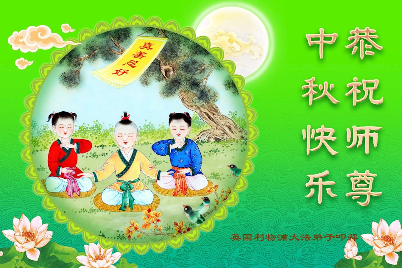 Četveročlana obitelj u Švedskoj želi Učitelju Li-u sretan Praznik sredine jeseni!Čestitke su primljene iz grupe za učenje u Saigonu, Vijetnam.Čestitke od Falun Dafa praktikanata iz Melbournea, Novi Zeland Praktikanti u Italiji žele Učitelju Li-u sretan Praznik sredine jeseni!Čestitke od praktikanata iz Danske.Praktikanti u Portugalu poželjeli su Učitelju Li-u sretan Praznik sredine jeseni!Praktikanti iz Grčke poslali su svoje čestitke.