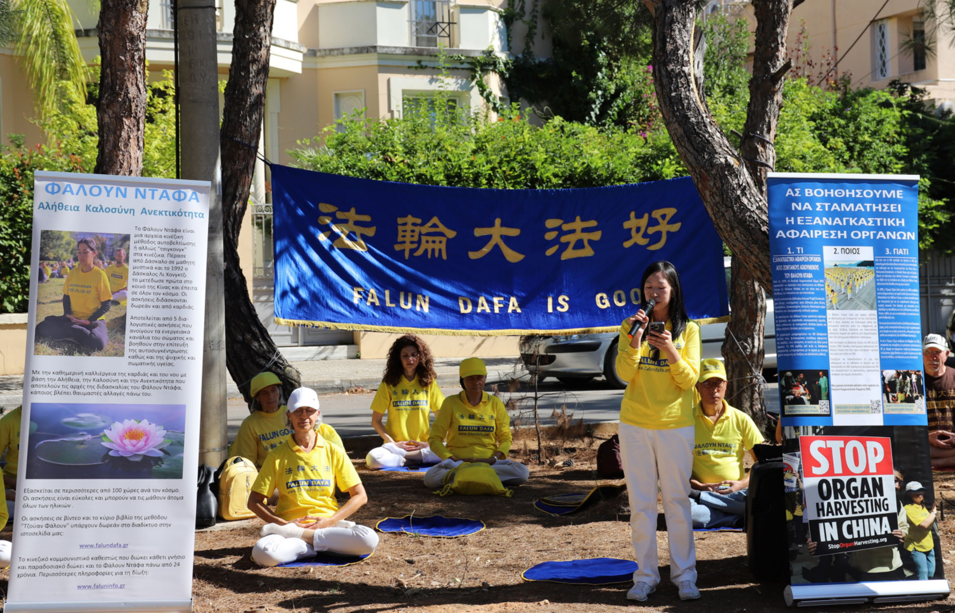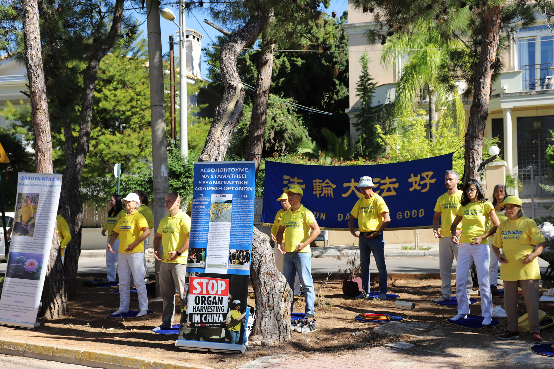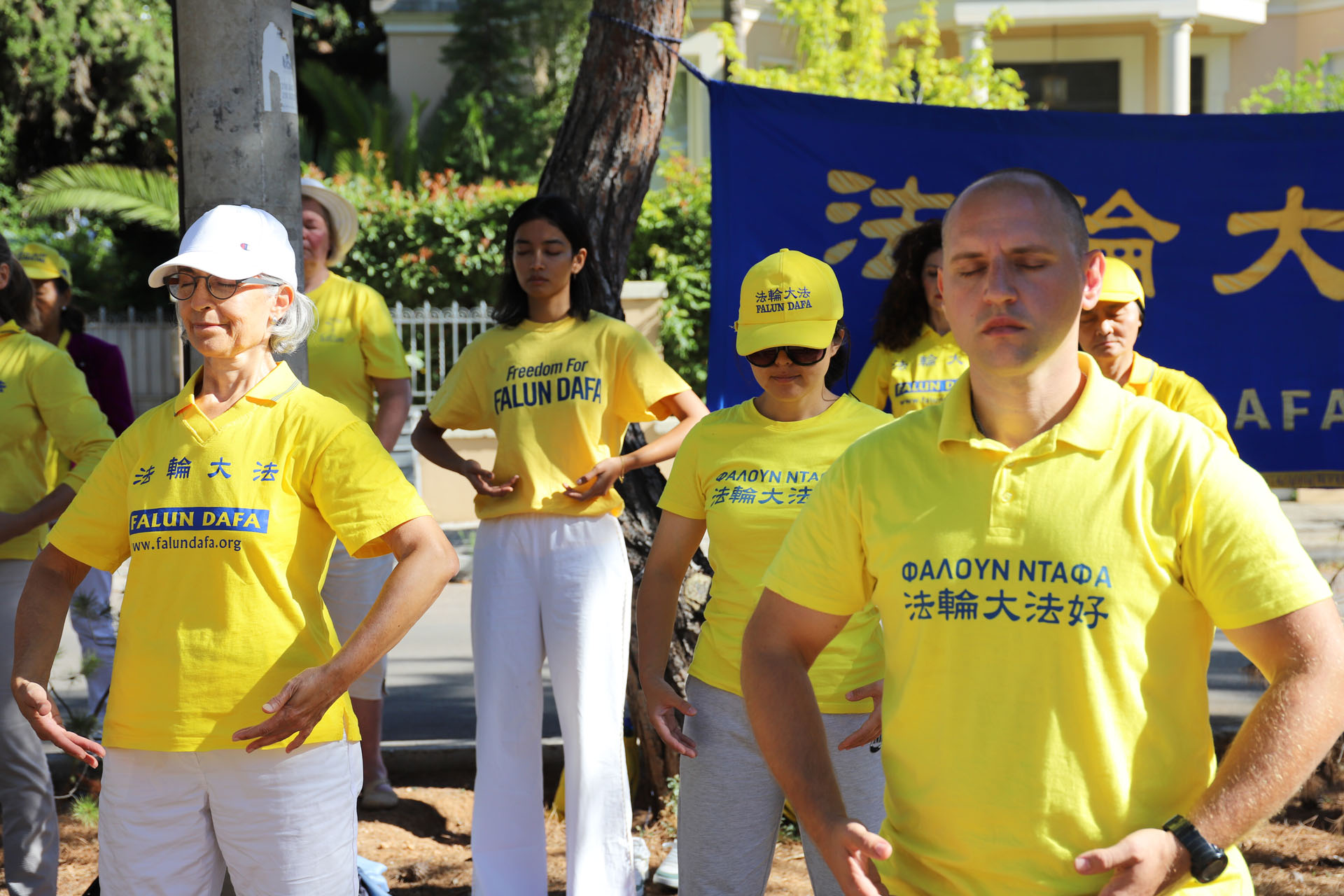Falun Dafa praktikanti su se okupili ispred kineskog konzulata u Atini u znak protesta zbog 25-godišnjeg progona prakse od strane kineskog režima u Kini. Na skupu održanom 3. oktobra 2024. su govorili Predstavnik grčkog Falun Dafa udruženja i Udruženja “Doktori protiv prisilnog uzimanja organa” (DAFOH) kao i praktikanti. Oni su osudili zločine protiv čovječnosti koje vrši Komunistička partija Kine (KPK) i sistemsku prisilnu žetvu organa od živih praktikanti koji su bili zatvoreni jer su odbili da odustanu od prakticiranja ove prakse. Praktikanti su došli iz Njemačke, Holandije, Švicarske, Turske, Bugarske, Rumunije, Kipra i Grčke kako bi pomogli u podizanju svijesti javnosti o progonu i pozvali KPK da prekine progon.