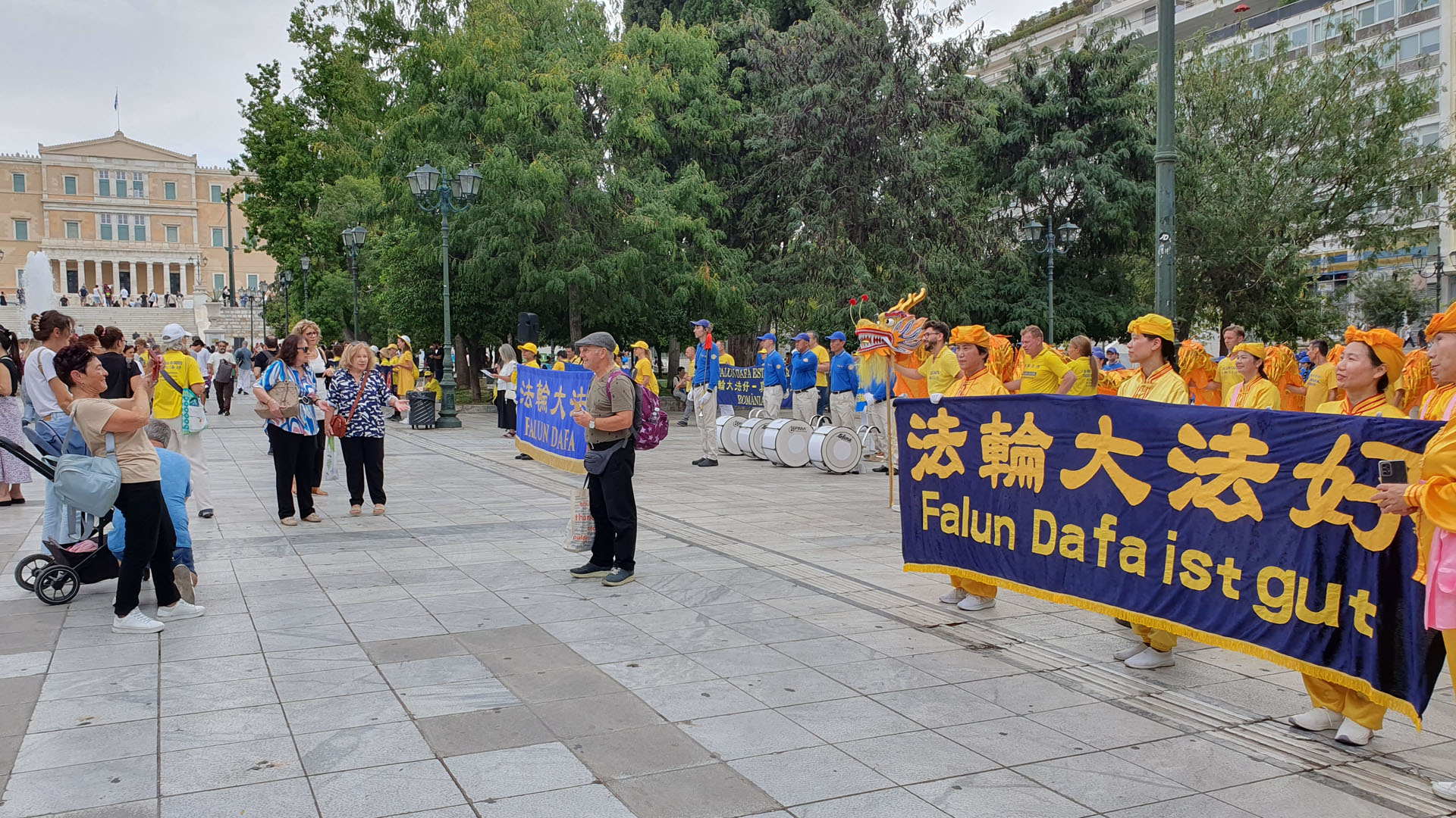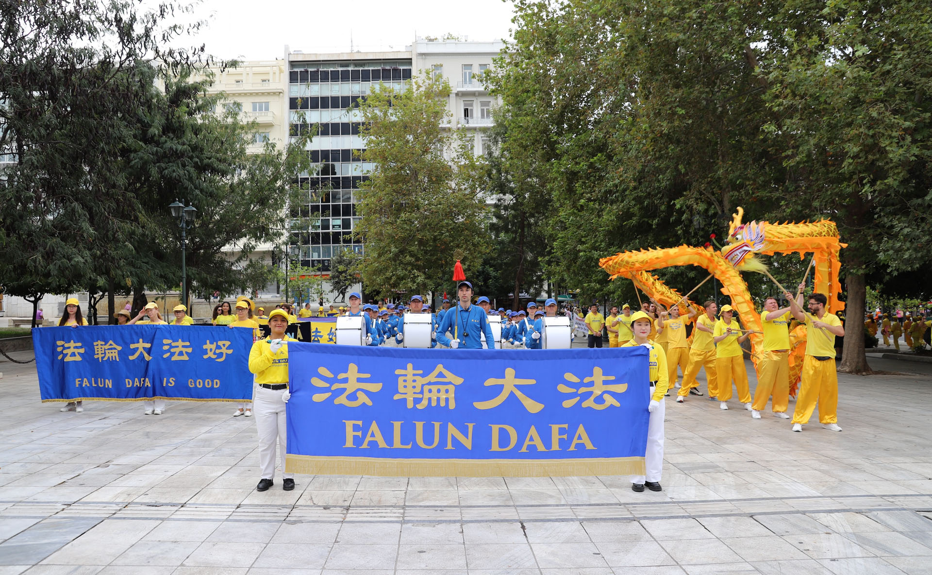 Evropski Tian Guo Marching Band i Falun Dafa praktikanti iz preko 12 zemalja su, 4. i 5. oktobra 2024. godine održali marševe i skupove u Atini, glavnom gradu Grčke. Oni su stanovnicima Grčke i turistima predstavili Falun Dafa (također poznat kao Falun Gong) i pozvali sve dijelove društva da obrate pažnju i pomognu da se zaustavi 25-godišnji progon ove prakse od strane Komunističke partije Kine (KPK).