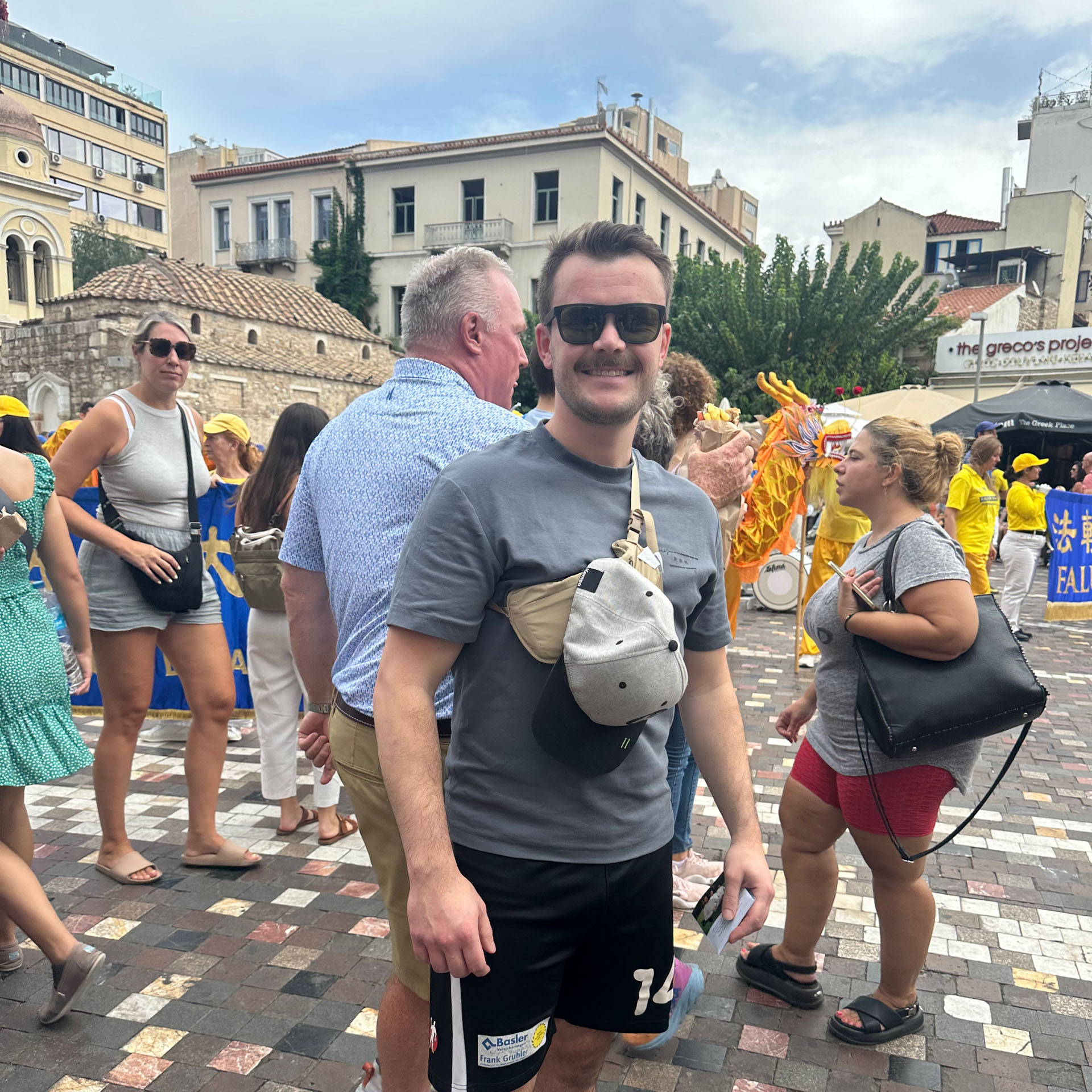 Kada je saznao da je većina praktikanata koji su učestvovali na događaju iz drugih evropskih zemalja, Anthony je upitao praktikanticu: „Ko te plaća?“ Praktikantica mu je kazla da su svi oni volonteri i da nisu plaćeni. Objasnila je da praktikanti svake godine održavaju ove aktivnosti u mnogim evropskim zemljama kako bi svi mogli saznati za Falun Gong i pomoći u okončanju progona KPK. Anthony je bio dirnut nesebičnom posvećenošću praktikanata i kazao da se nada da će njihovi događaji proći dobro i biti uspješni.