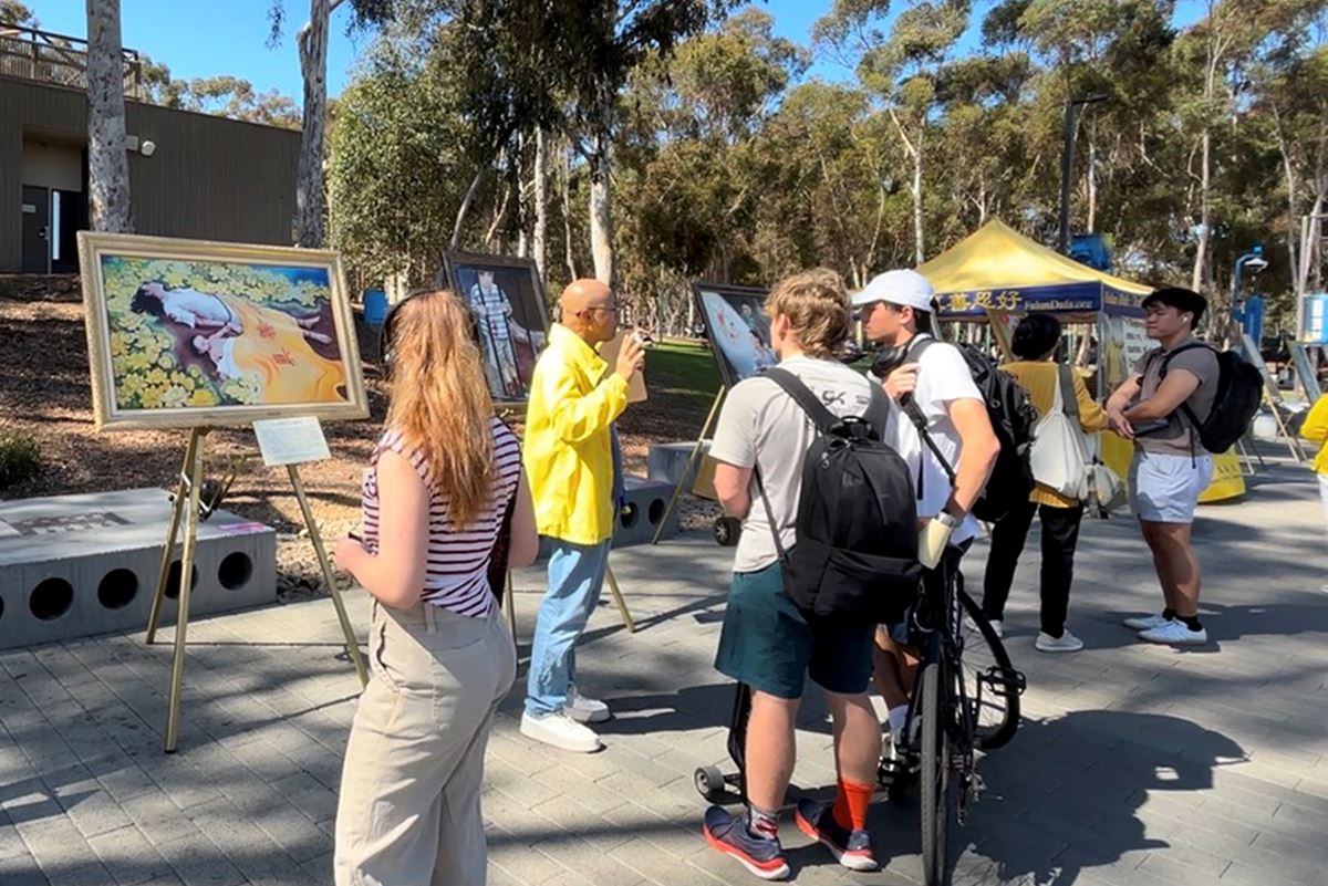 Umjetničku izložbu organizirala je studentska organizacija Falun Dafa Klub pri UCSD. Filip, voditelj kluba, rekao je: „Ove godine nam je bilo lijepo vrijeme, jer je nova školska godina tek počela. Potreban nam je veliki prostor za održavanje umjetničke izložbe, što je obično teško pronaći. Ali ovoga puta ima dovoljno mjesta za nas. Zaista smo sretni što studenti imaju priliku pogledati umjetničku izložbu i učiti o Falun Gongu.”