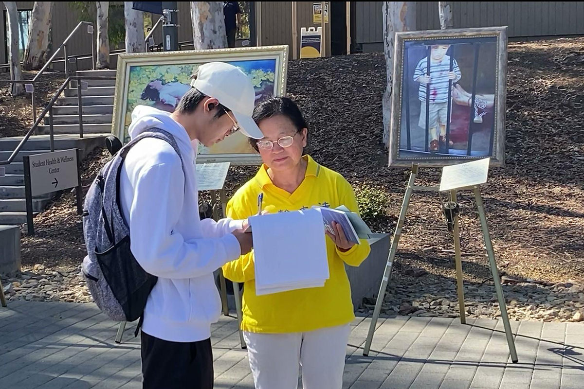 U kampusu Kalifornijskog sveučilišta u San Diegu (UCSD), slike s međunarodne izložbe Umjetnost Zhen Shan Ren (Istinitost, Dobrodušnost, Strpljenje) bile su poredane duž ceste koja vodi do knjižnice dana 14. listopada 2024., dajući studentima koji su prolazili prilike da nauče o Falun Dafa i progonu kojeg u Kini provodi Komunistička partija Kine (KPK). Događaj je također uključivao prikupljanje potpisa za S.4914 Senata SAD - Zakon o zaštiti Falun Gonga.