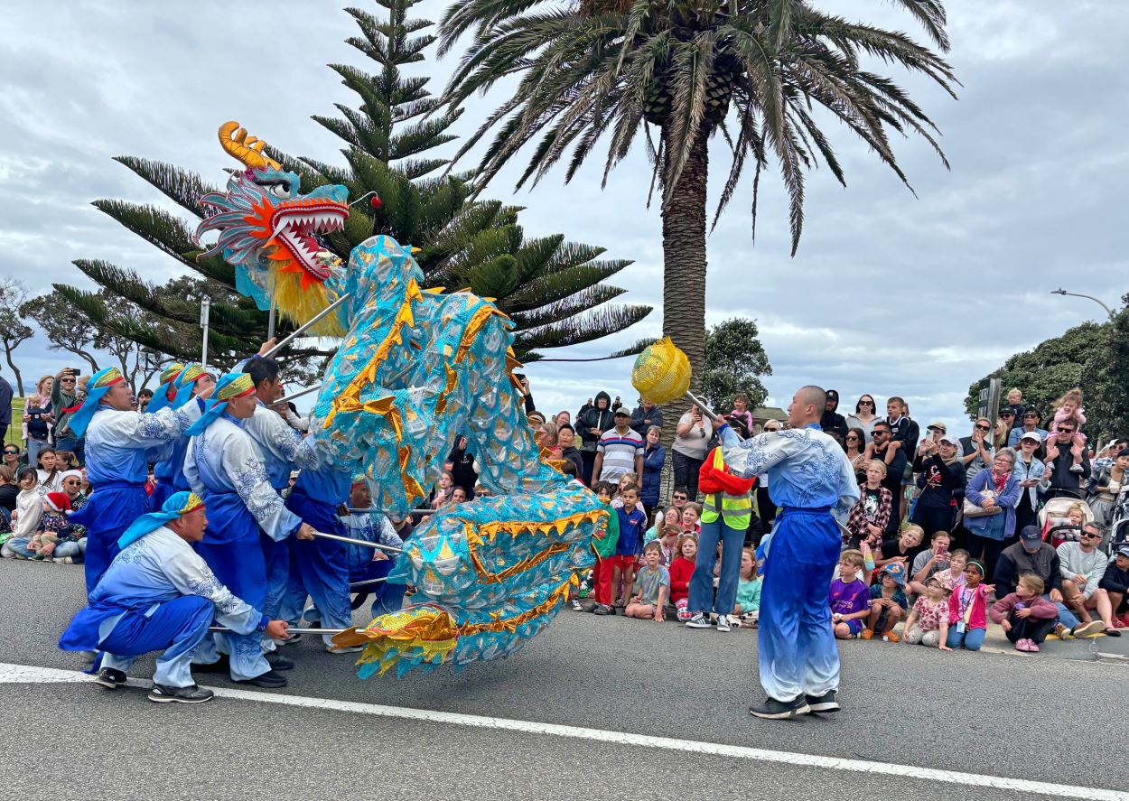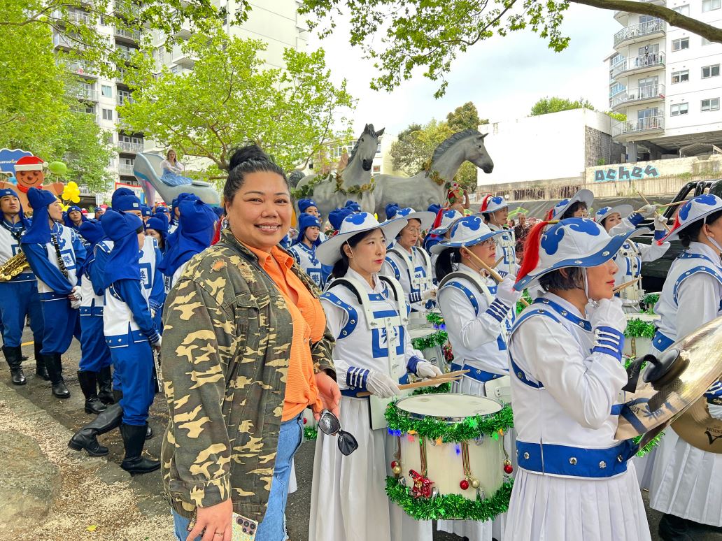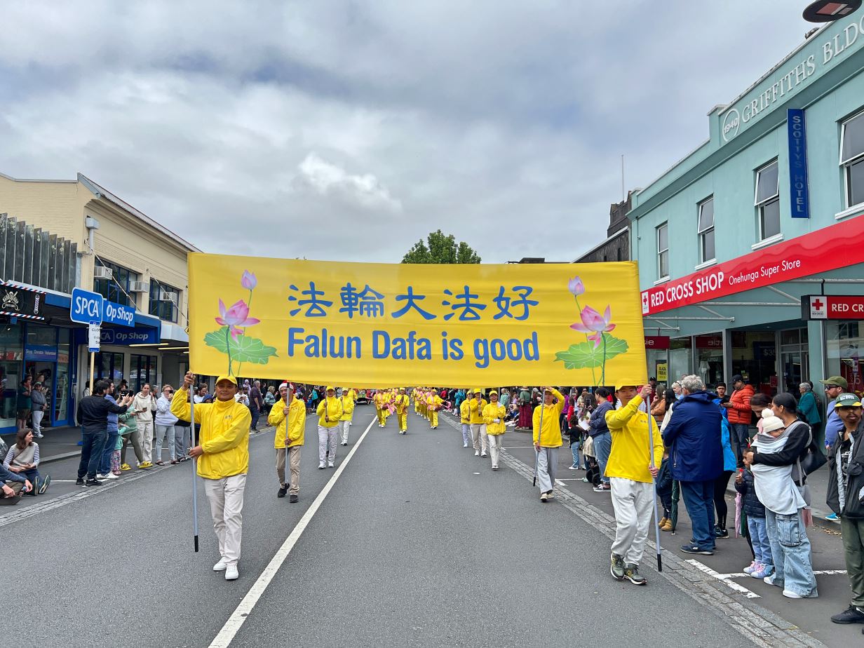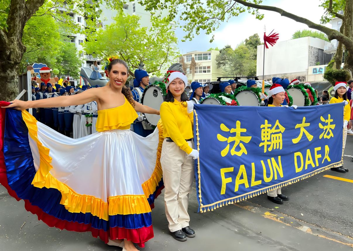 Na Novom Zelandu, Tian Guo Marching Band Falun Dafa praktikanata, plesači zmajeva i tim bubnjara sudjelovali su u četiri božićne parade 23. i 24. studenog 2024. Njihovi su nastupi bili dobro primljeni od strane gledatelja i dobili su pljesak puno puta.