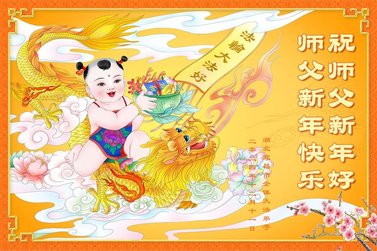 Falun Dafa praktikanti iz provincije Hubei s poštovanjem žele Učitelju Li Hongdžiju srećnu Novu godinu (18 čestitki)