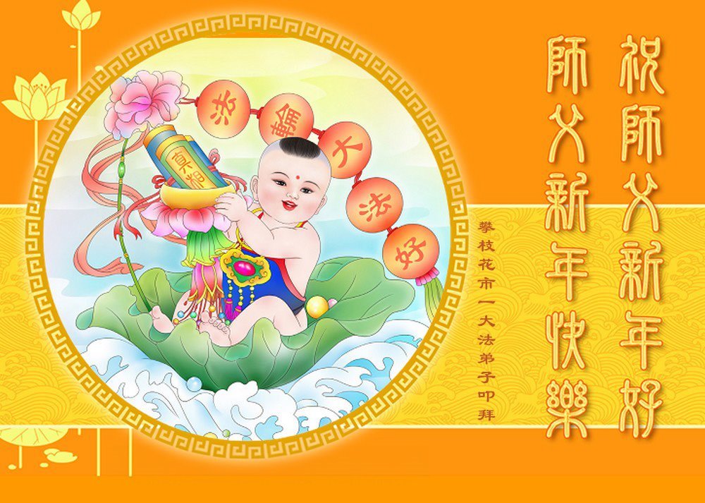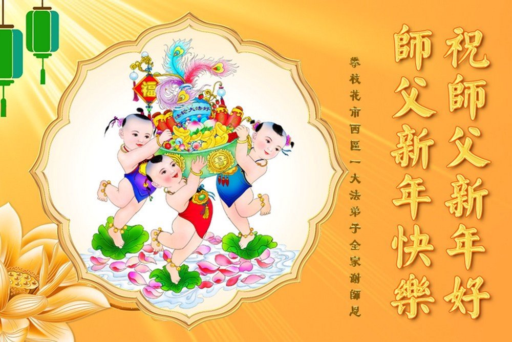 Falun Dafa praktikanti iz provincije Sečuan s poštovanjem žele Učitelju Li Hondžiju srećnu Novu godinu (19 čestitki)