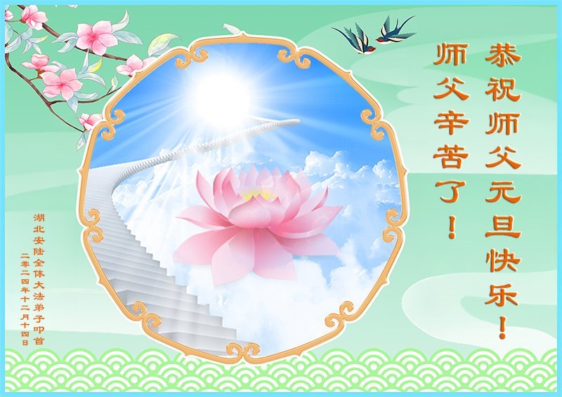 Falun Dafa praktikanti iz provincije Hubei s poštovanjem žele Učitelju Li Hongdžiju srećnu Novu godinu (19 čestitki)
