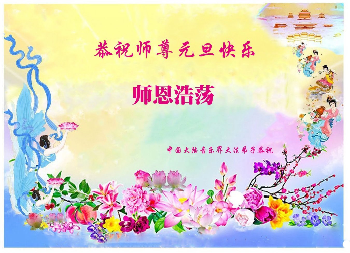 Nadolaskom Nove godine, praktikanti iz susjednih odbora grada Nanjinga, provincija Jiangsu, napisali su da znaju kako je Učitelj silno propatio za praktikante. “Kako vrijeme prolazi, mi praktikanti bismo također trebali biti odlučniji i zreliji. Naše zdravlje i vještine dolaze od Falun Dafa. Naša odlučnost da slijedimo Istinitost-Dobrodušnost-Toleranciju će nam pomoći nadvladati poteškoće i potaknuti naš stalni napredak. Hvala vam, Učitelju Li, i sretna Nova godina!”