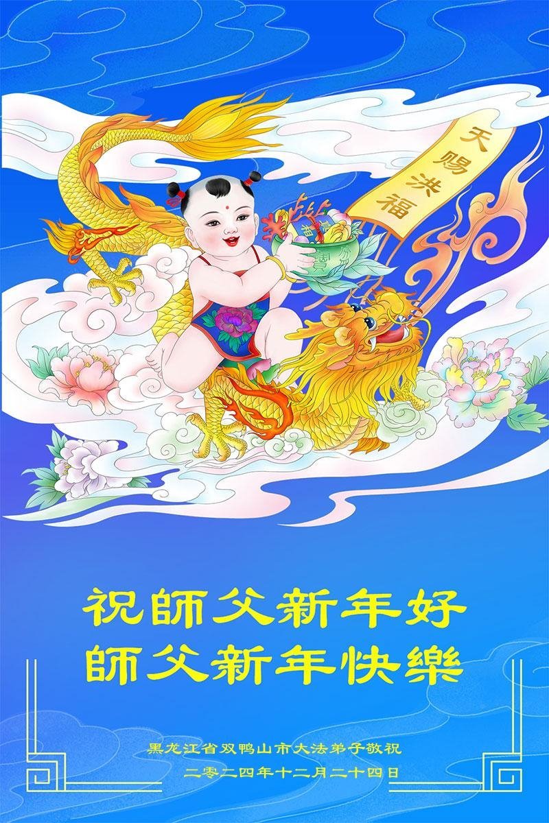Falun Dafa praktikanti iz provincije Heilongjiang s poštovanjem žele Učitelju Li Hongdžiju srećnu Novu godinu (19 čestitki)