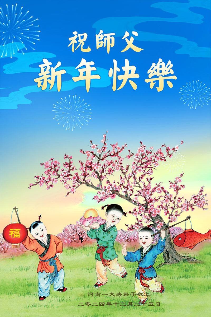 Falun Dafa praktikanti iz provincije Henan s poštovanjem žele Učitelju Li Hongzhiju sretnu Novu godinu (19 čestitki)