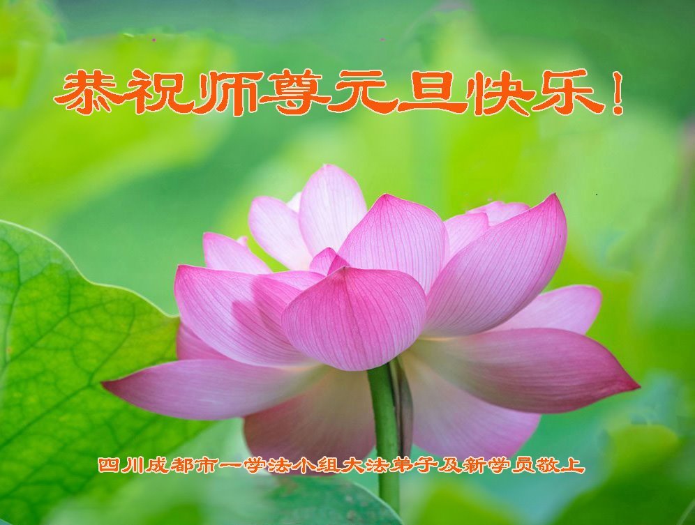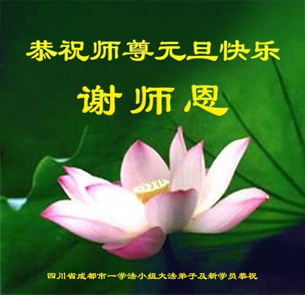 Dafa praktikanti i novi praktikanti iz grupe za učenje Fa u gradu Chengdu, provincija Sichuan, s poštovanjem žele Učitelju sretnu Novu godinu!