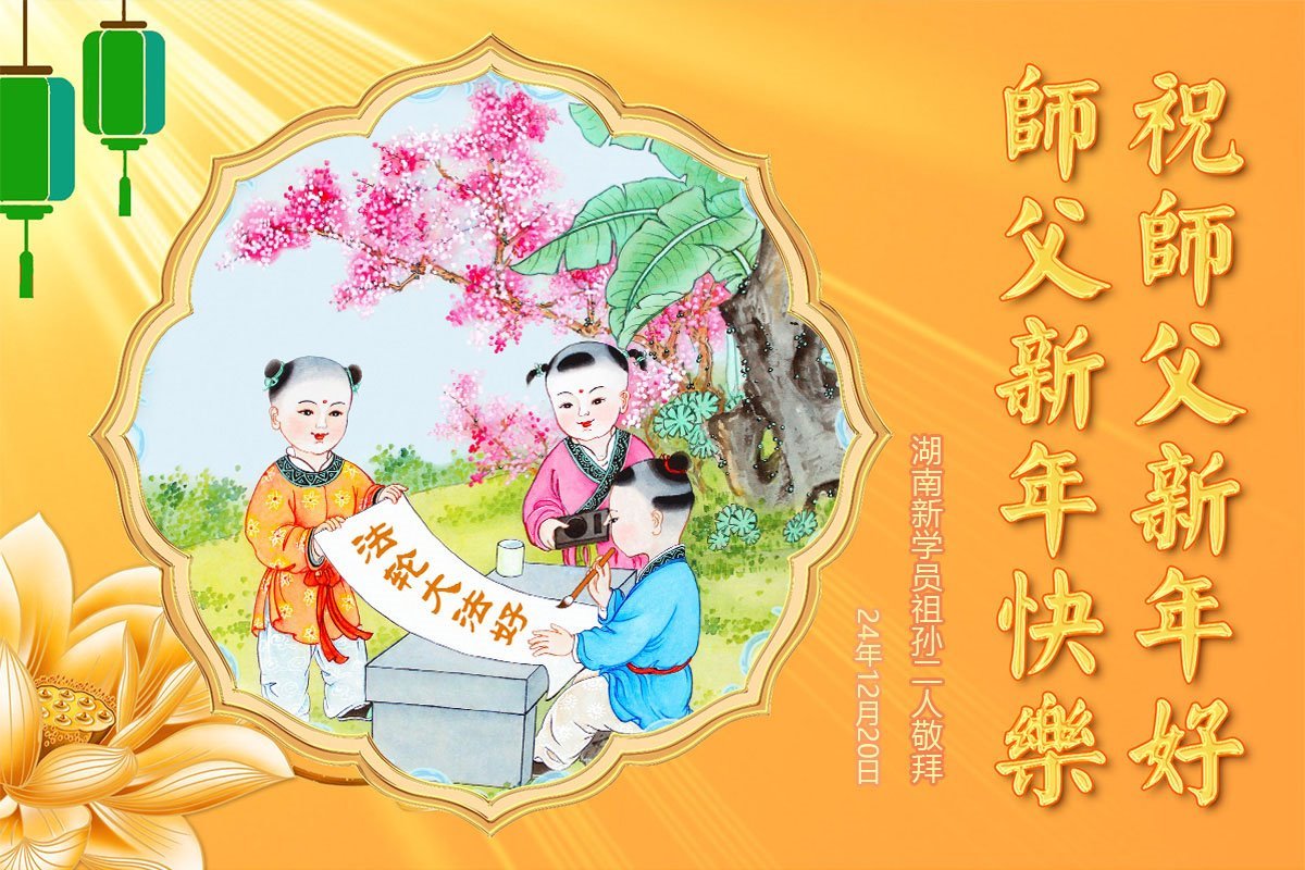 Falun Dafa praktikanti i novi praktikanti iz grupe za učenje Fa u Kini s poštovanjem žele Učitelju sretnu Novu godinu!