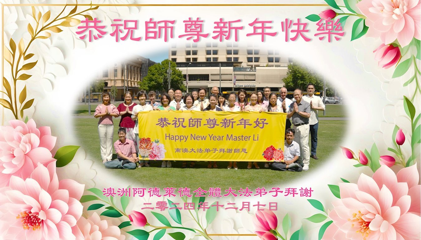 Falun Dafa praktikanti iz Adelaidea s poštovanjem žele Učitelju sretnu Novu godinu