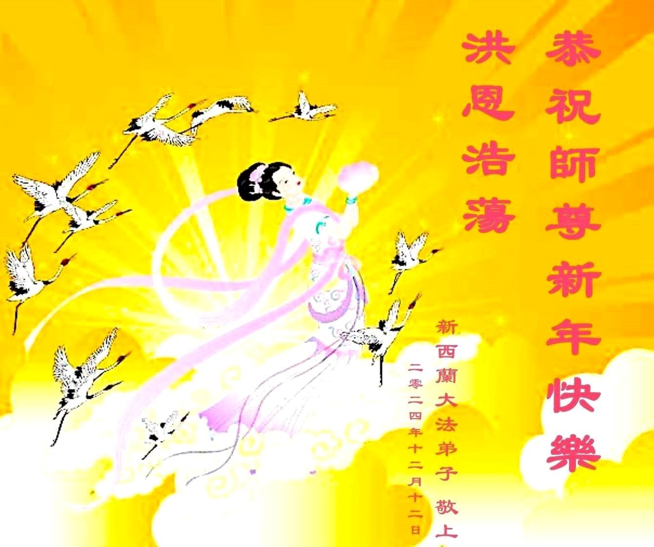 Falun Dafa praktikanti iz grupe za učenje Fa na Novom Zelandu s poštovanjem žele Učitelju sretnu Novu godinu