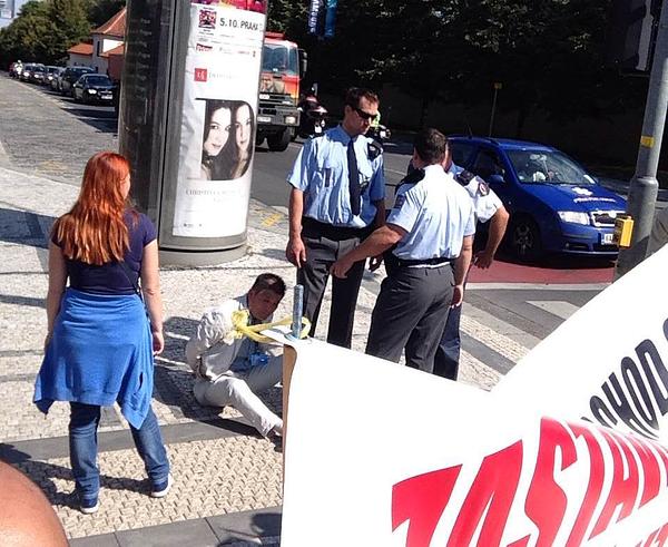 Češka policija je uhitila službenika kineskog veleposlanstva i dvoje članova „odbora za doček“ za vrijeme posjeta kineske delegacije Pragu, 28. kolovoza 2014.