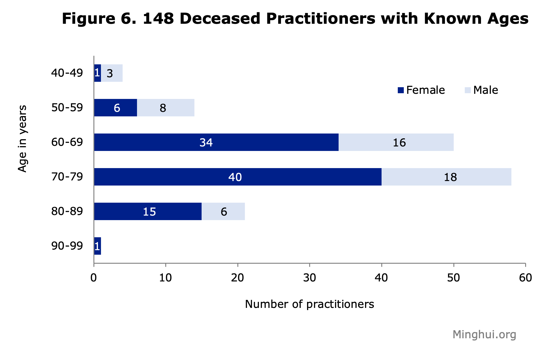 Od 164 novoprijavljena slučaja, dob 148 praktikanata je bila poznata u trenutku njihove smrti, naime, 130 je bilo u dobi od 60 ili više godina. Devedeset sedam od 148 praktikanata su bile žene, 39 je umrlo prije 2024. dok je njih 58 preminulo 2024. Preostalih 51 slučaj se odnosi na muškarce, njih 13 umire prije 2023., dok 38 gubi život tijekom 2024.