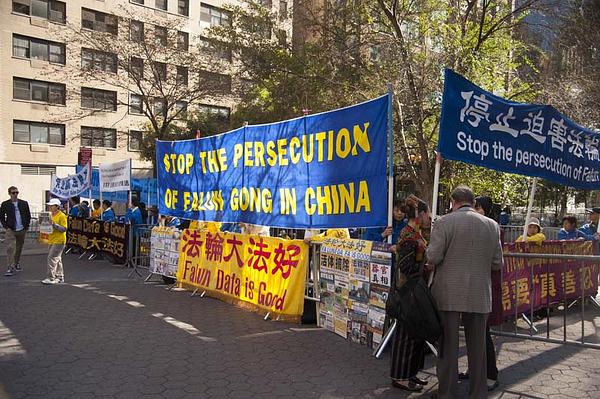 Prvi dan UN-ovog sastanka o klimatskim uvjetima za 2014, Falun Gong praktikanti iz New Yorka su organizirali aktivnosti ispred sjedišta UN-a i hotela Waldorf Astoria gdje su odsjeli kineski predstavnici, u znak protesta zbog 15 godina dugog progona Falun Gonga u Kini.