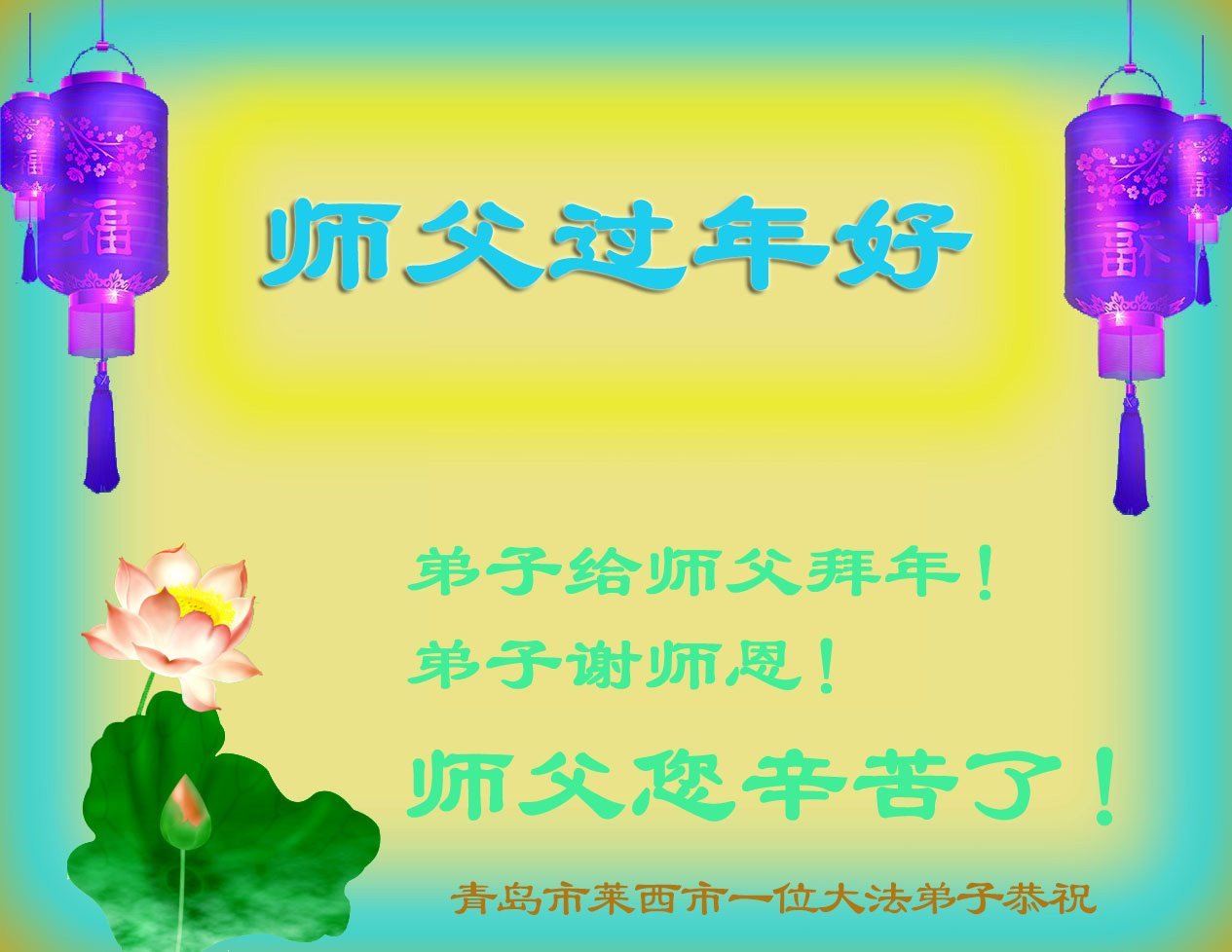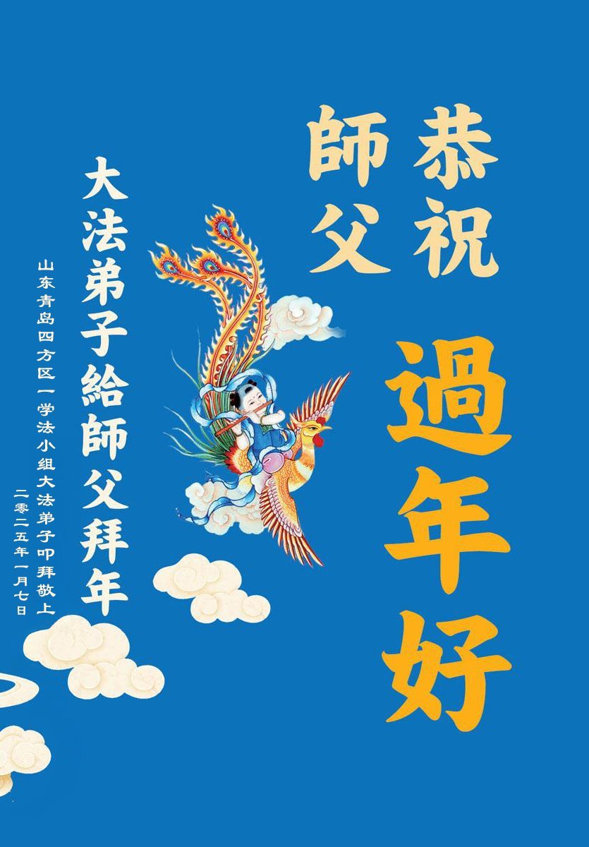 Falun Dafa praktikanti iz grada Kingdao s poštovanjem žele Učitelju Li Hongdžiju srećnu kinesku Novu godinu (19 čestitki)