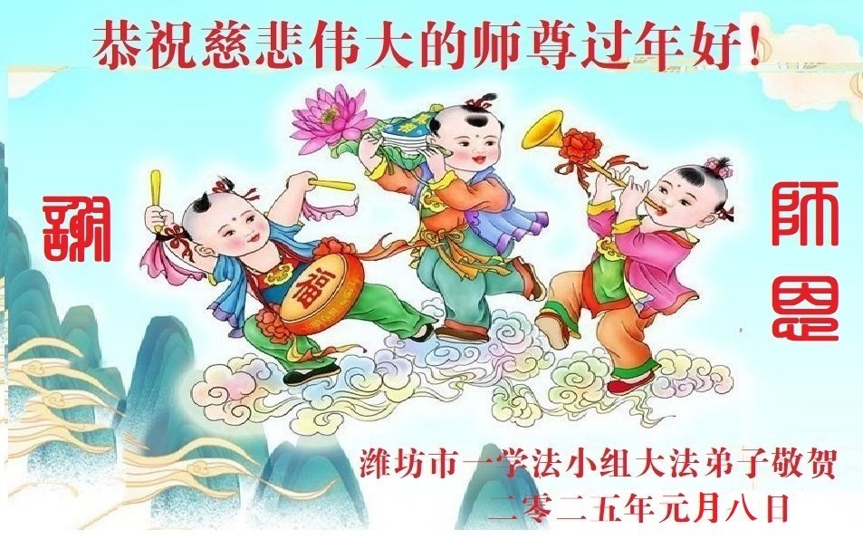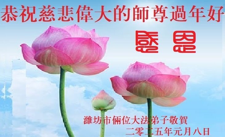 Falun Dafa praktikanti iz grada Vejfanga s poštovanjem žele Učitelju Li Hongdžiju srećnu kinesku Novu godinu (23 čestitke)