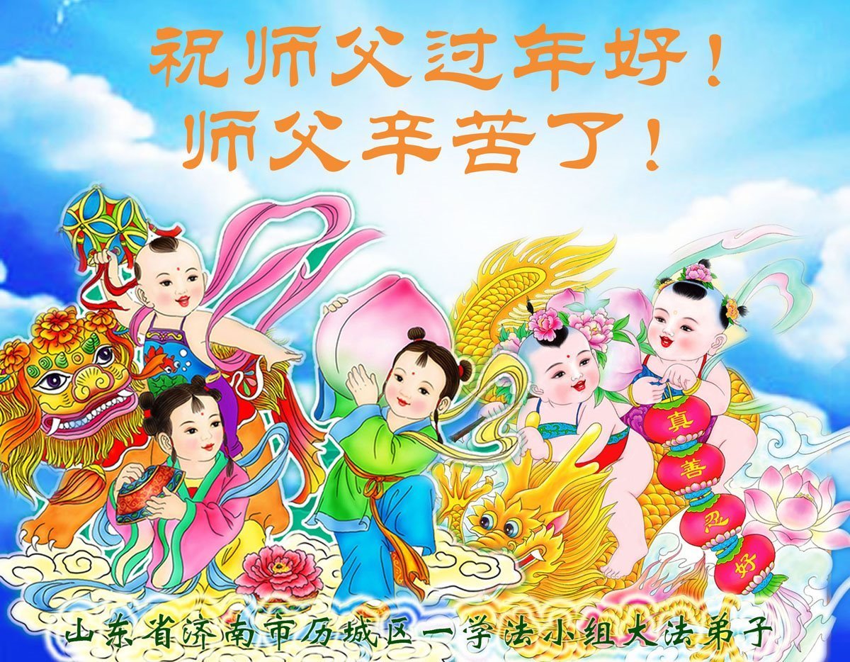 Falun Dafa praktikanti iz grada Jinan s poštovanjem žele Učitelju Li Hongdžiju srećnu kinesku Novu godinu (19 čestitki)