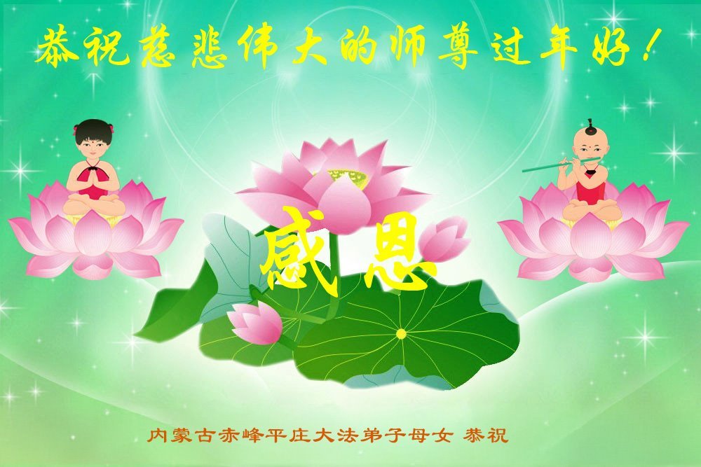 Falun Dafa praktikanti iz autonomne regije Unutrašnja Mongolija s poštovanjem žele Učitelju Li Hongdžiju srećnu kinesku Novu godinu (21 čestitka)