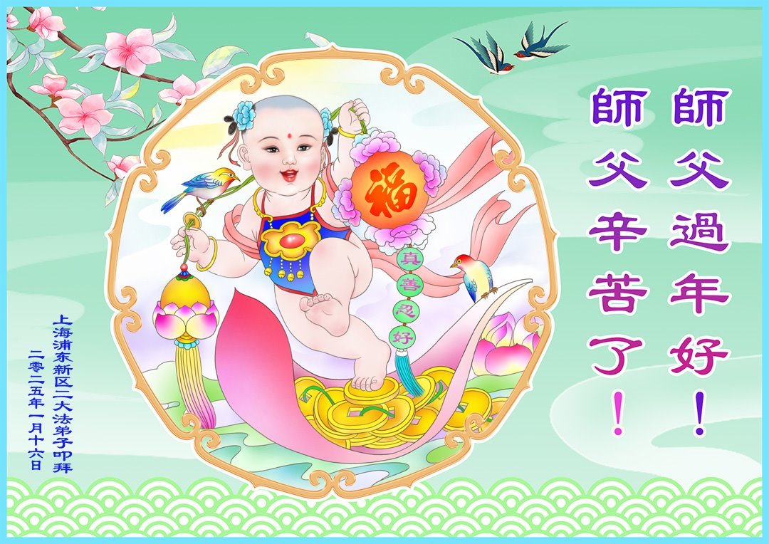 Falun Dafa praktikanti iz Šangaja s poštovanjem žele Učitelju Li Hongdžiju srećnu kinesku Novu godinu (22 čestitke)
