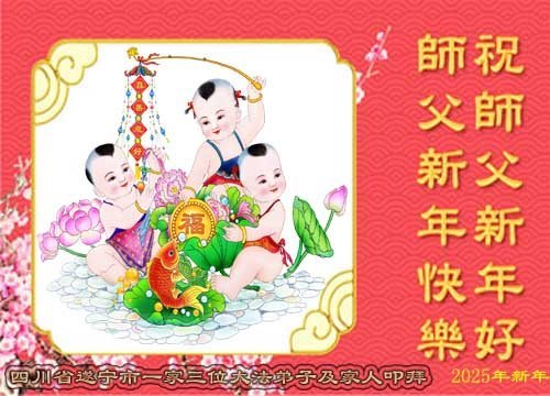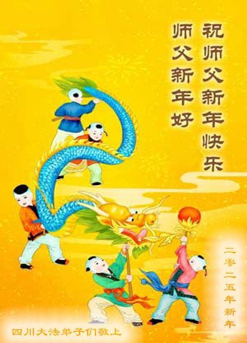 Falun Dafa praktikanti iz provincije Sečuan s poštovanjem žele Učitelju Li Hongdžiju srećnu kinesku Novu godinu (18 čestitki)