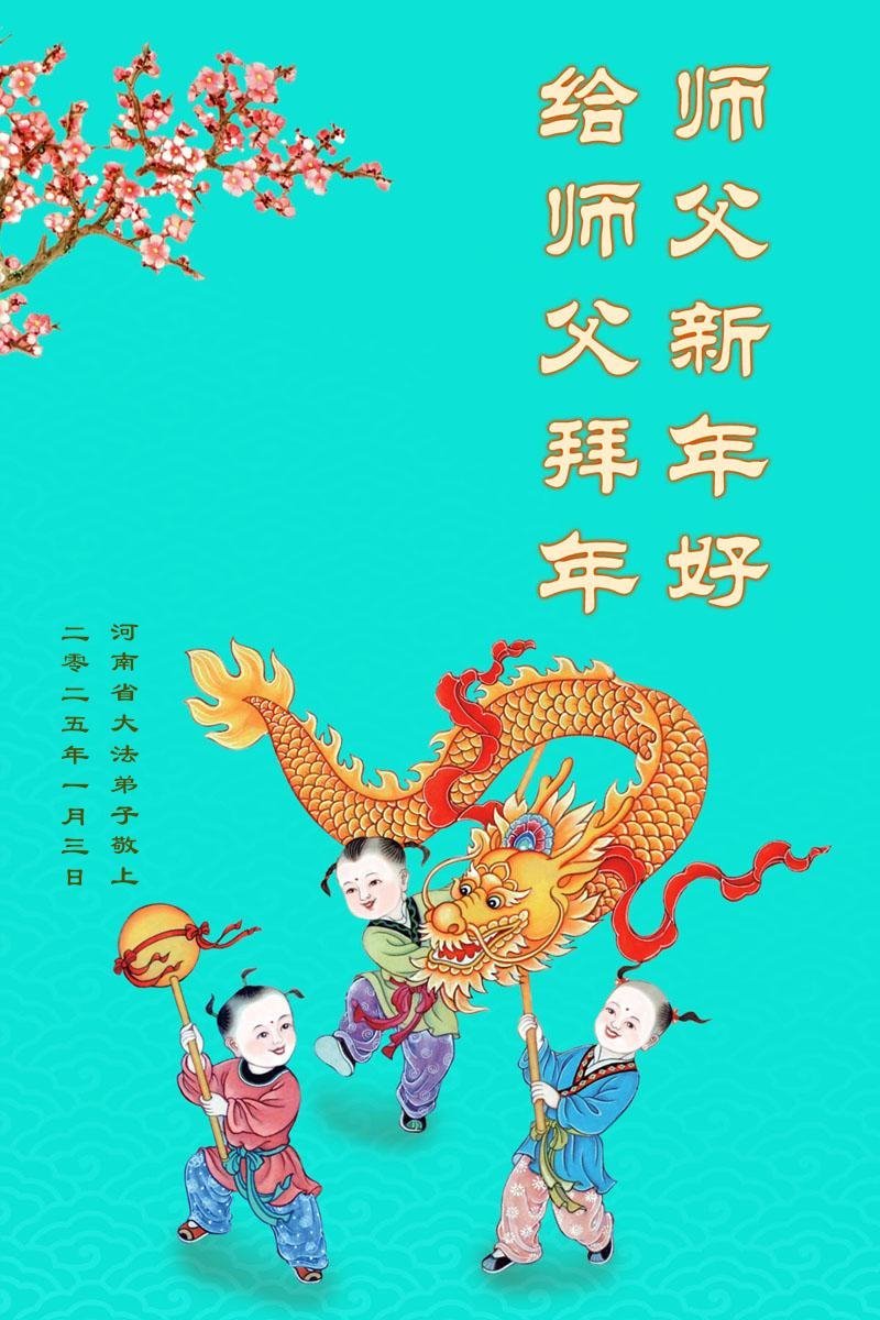 Falun Dafa praktikanti iz provincije Henan s poštovanjem žele Učitelju Li Hongdžiju srećnu kinesku Novu godinu (19 čestitki)