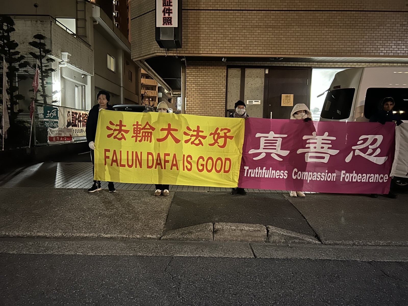 Falun Dafa praktikanti su mirno protestovali ispred kineskog konzulata u Nagoji, Japan, na kinesku Novu godinu, 28. januara 2025, od 23:00. do 01:30. Praktikanti iz Honkumamota takođe su protestovali tog dana ispred kineskog konzulata u Fukuoki i istakli transparente na kojima je pisalo: „Falun Dafa je dobra“, „Istina-Blagost-Trpeljivost“ i „SOS za okončanje progona Faluna Dafa“, pozivajući Komunističku partiju Kine (KPK) da okonča 26 godina dug progon Falun Dafe.