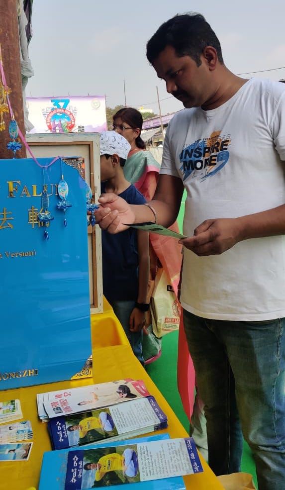 Jedan stariji čovjek je dva puta posjetio Falun Dafa štand i kupio nekoliko primjeraka knjige Zhuan Falun na telugu jeziku. „Ovo je ono što se trenutno traži: Istinitost, Dobrodušnost i Tolerancija“, rekao je. “Druge duhovne knjige su u redu, ali ovo je glavna knjiga koja nam je sada potrebna.”