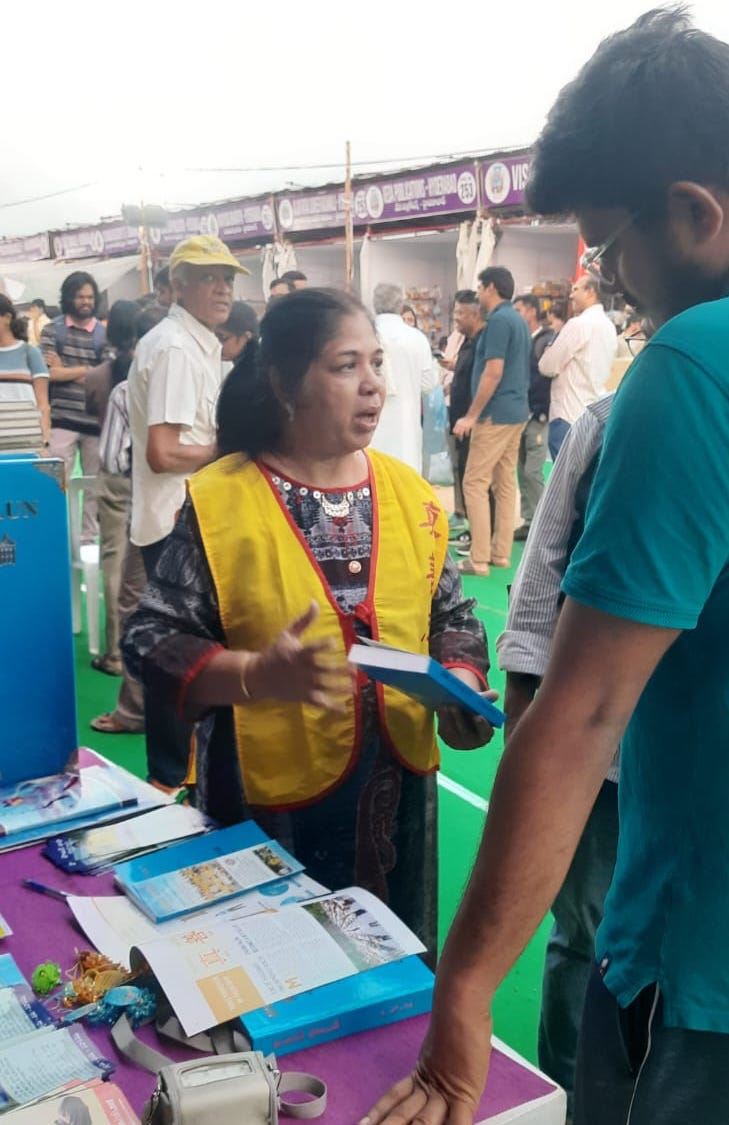 Od 2. do 9. januara 2025., Falun Dafa praktikanti su učestvovali na Vijayawada Book Festivalu, koji je organiziralo Vijayawada Book Festival Society (VBFS). Održan na opštinskom stadionu Indira Gandhi, festival je imao više od milion posjetilaca i preko 270 prodavača.