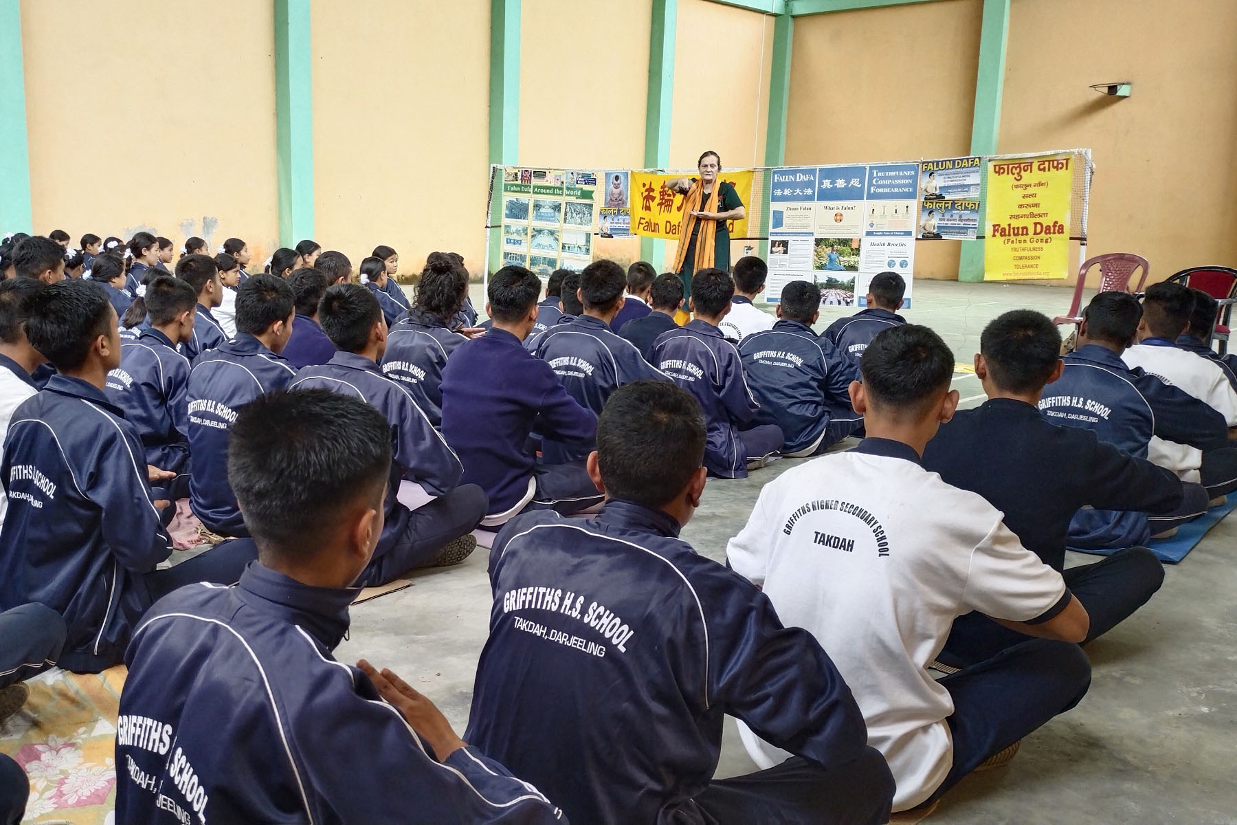 U Kalimpongu su u četiri škole i jednom fitnes klub održani Falun Dafa seminari, na kojima su učenici naučili vježbe, saznali načela Dafa moralnih učenja i o progonu kojem su praktikanti Falun Dafa trenutno izloženi u Kini.
