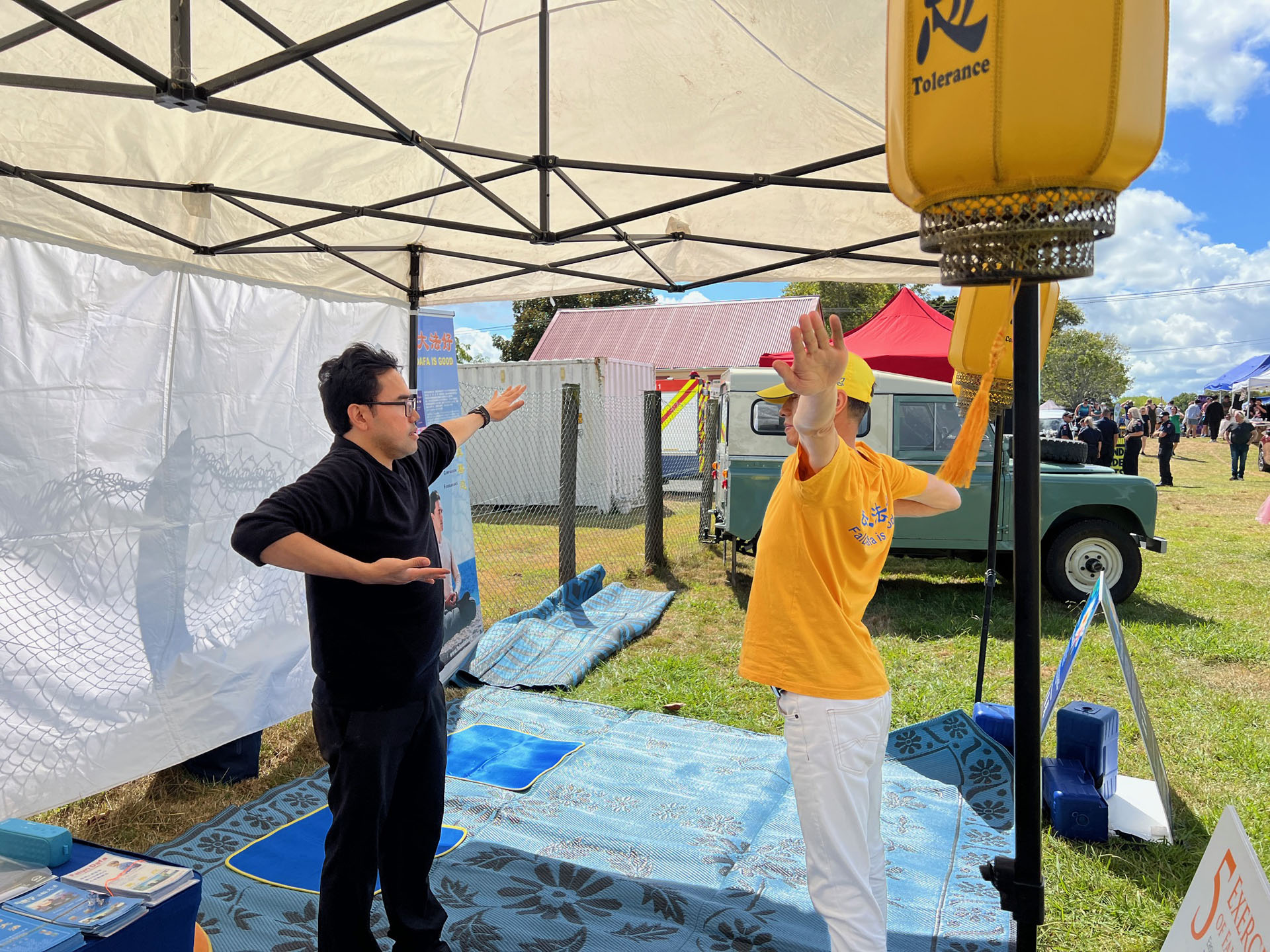 Falun Dafa praktikanti sudjelovali su na godišnjem sajmu Poljoprivrednog i hortikulturnog društva okruga Kumeu za vikend od 8. do 9. ožujka 2025. Ovaj popularni obiteljski događaj prikazuje poljoprivredu, izložbe životinja i natjecanja, glazbu i razne kulturne ponude. Falun Dafa štand je bio podijeljen u pet odjeljaka: kaligrafija, izrada origami lotosa, tradicionalno rezanje papira i demonstracije i podučavanje Falun Dafa vježbi . Mnogi su posjetitelji u subotu učili vježbe.