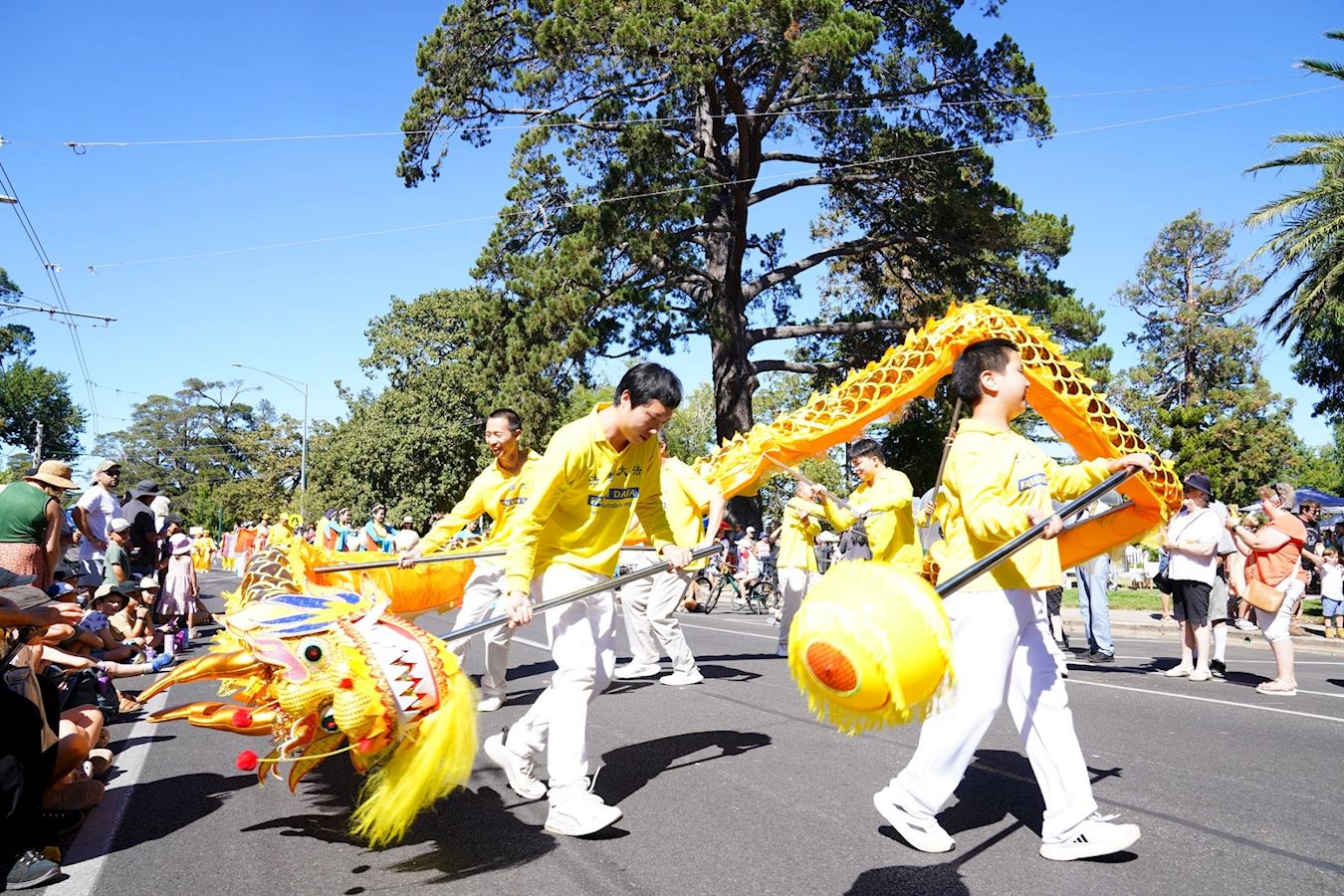 Povorka je započela u botaničkom vrtu u 11 sati, a gledatelji svih uzrasta okupili su se s obje strane rute. Ovo je bio prvi put da su Falun Dafa praktikanti sudjelovali u povorci. Njihov nastup se sastojao od alegorijskih kola u obliku broda, demonstracija vježbi, tima vilinskih djevojaka, tima bubnjeva oko struka, plesnog tima s lepezom, ekipe sa zmajem i izvedbe grupe sa vijetnamskim šeširima od bambusa.