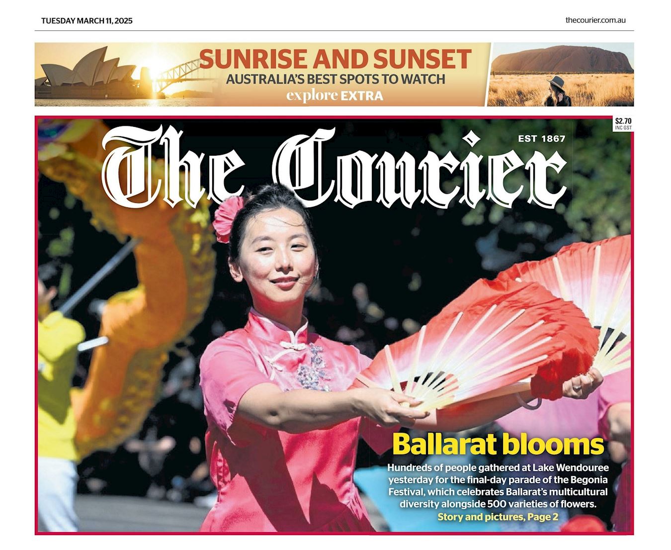 Praktikanti su pozdravljeni pljeskom i ovacijama. Gradonačelnik Ballarata je predstavio Falun Dafa rekavši kako je osjetio umirujuću energiju. Fotografije mimohoda su objavljene na naslovnoj i drugoj stranici The Couriera – najvećih novina na ovom području. Na naslovnici je objavljena fotografija Falun Dafa praktikantice koja izvodi ples s lepezom.