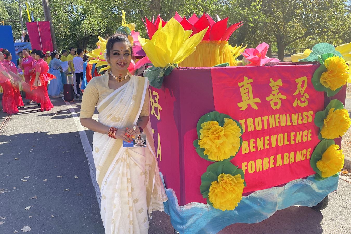 Jinu Mathew vodi bollywoodsku plesnu radionicu i podučava yogu. Također je profesorica mentalnog zdravlja u srednjoj školi u Ballaratu. Dovela je polaznike svog plesnog tečaja da prisustvuju povorci.