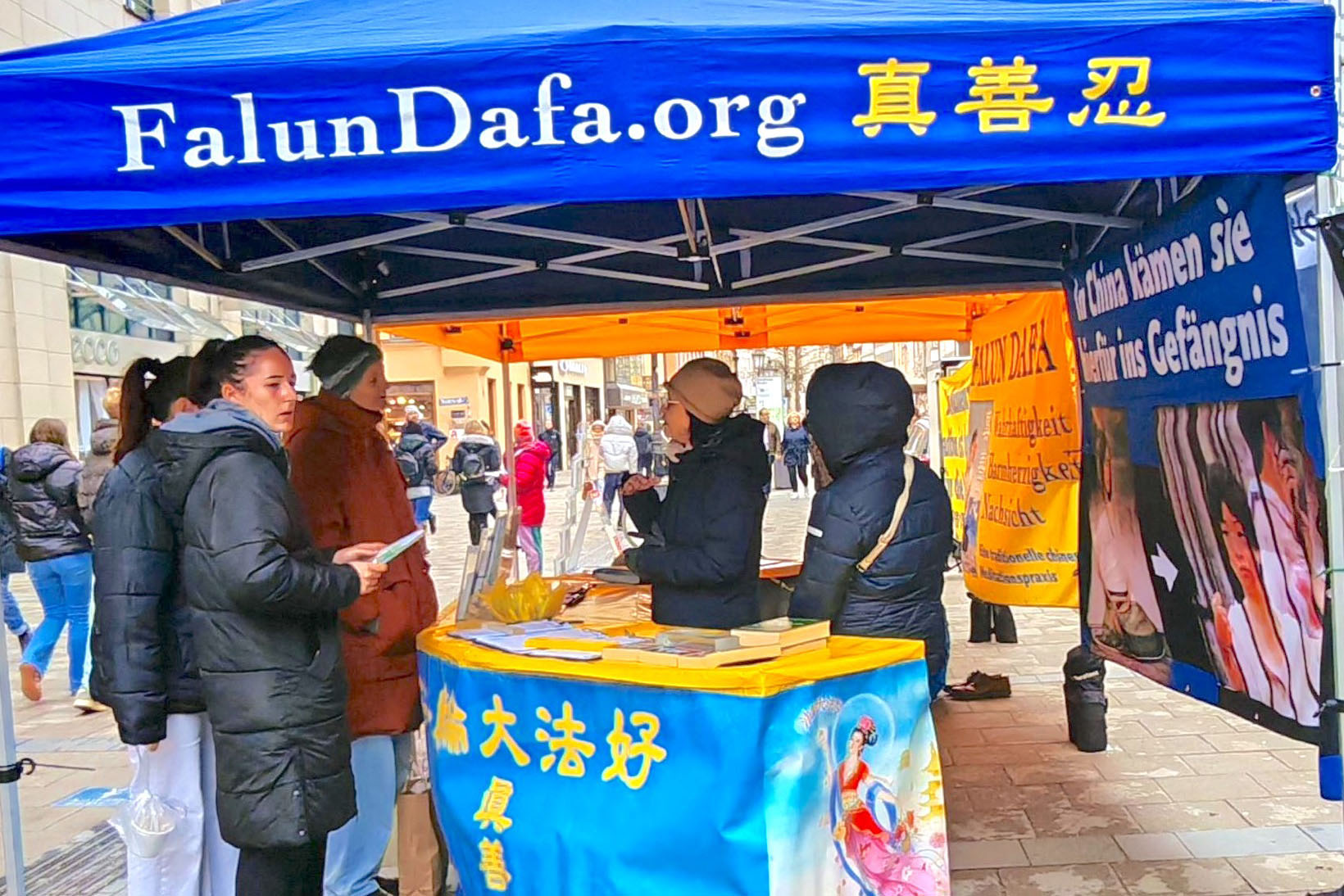 Lokalni Falun Gong praktikanti su 15. marta 2025. održali događaj u Sendlinger Strasse, pešačkoj ulici u centru Minhena, kako bi predstavili ovu duhovnu praksu. Oni su govorili ljudima o progonu Komunističke partije Kine (KPK) i prisilnom vađenju organa koje cilja na praktikante. Lokalno stanovništvo osudilo je progon i podržalo njihove napore da ga razotkriju.