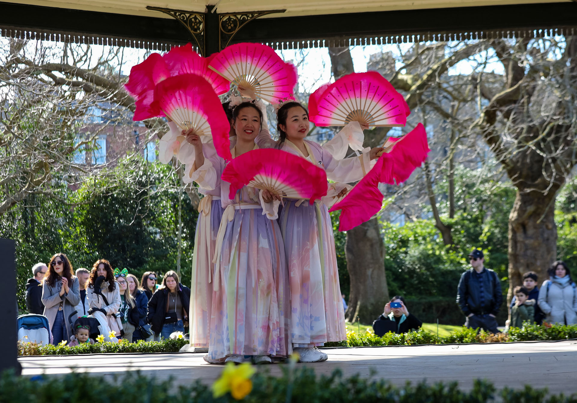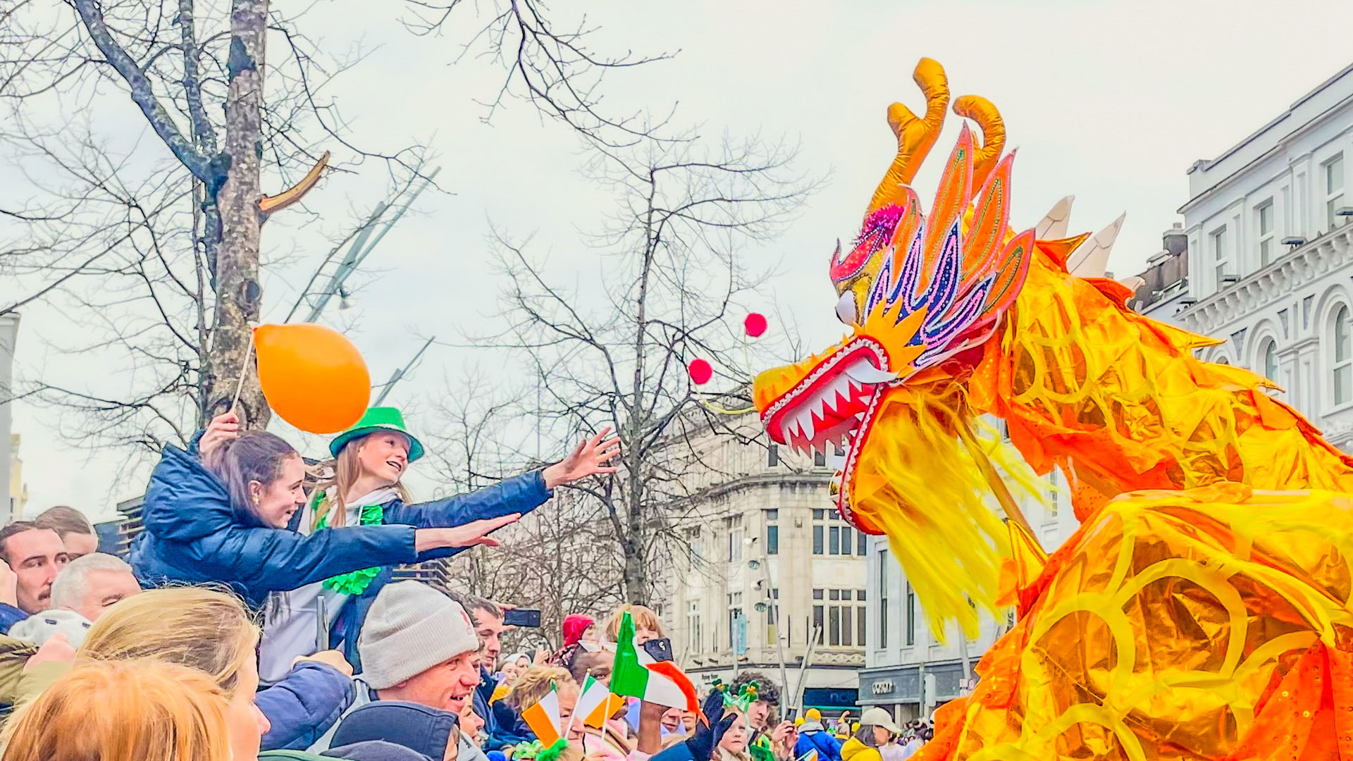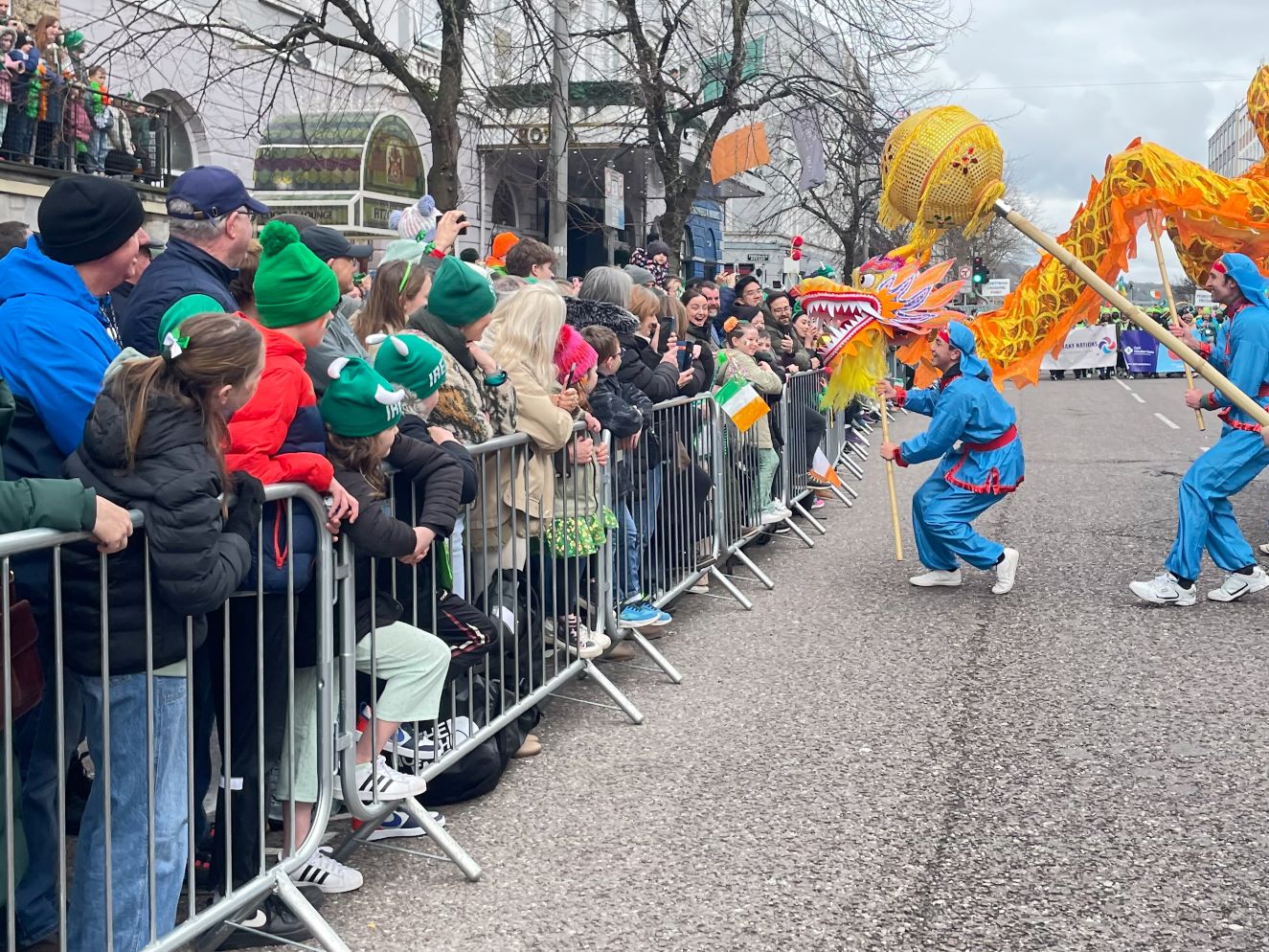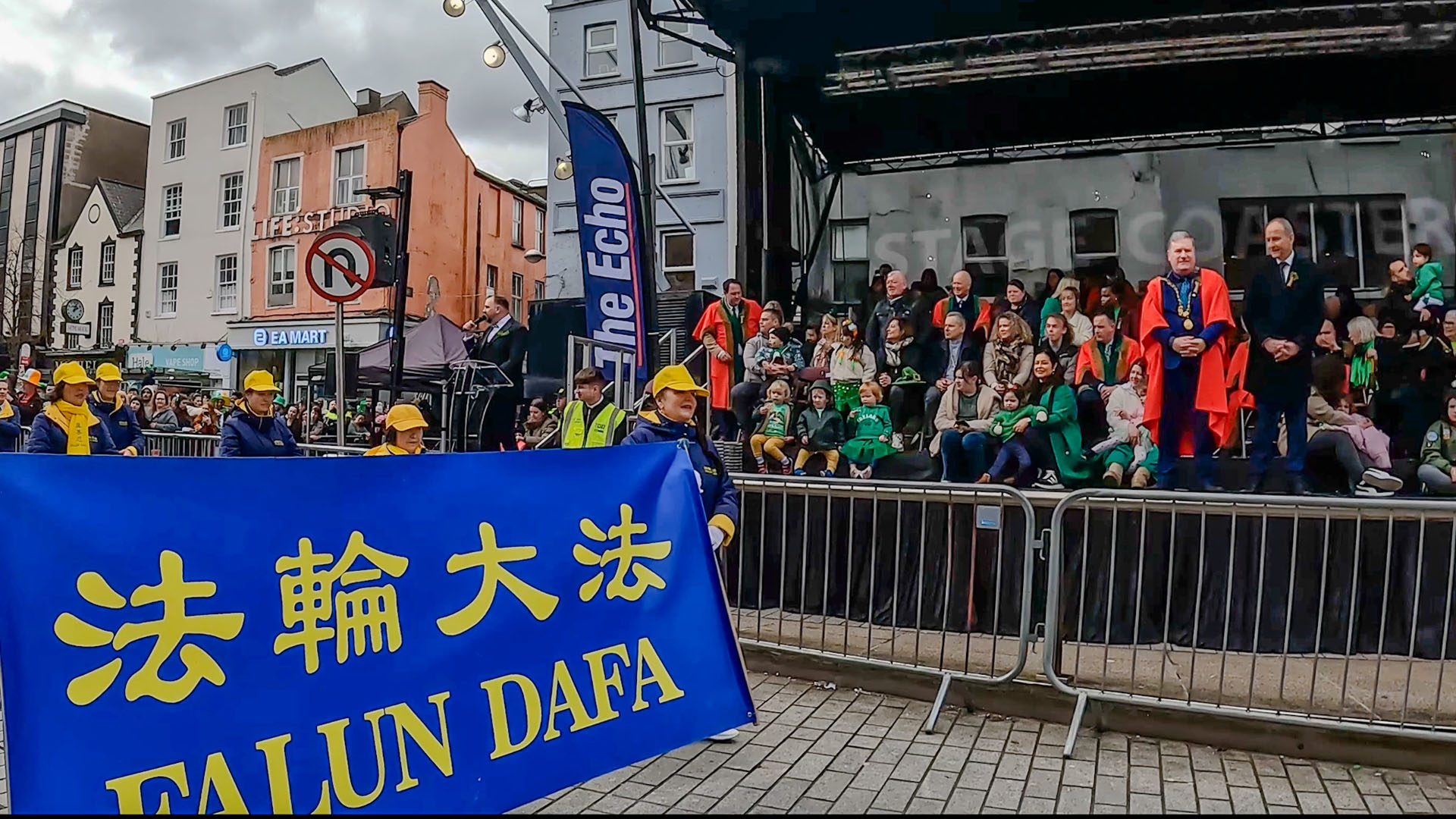 Praktikanti su 16. marta učestvovali u proslavi povodom Dana sv. Patrika u Dublinu, glavnom gradu Irske. Praktikanti su nosili tradicionalne raznobojne nošnje i za publiku izveli ples lotosa i lepeza. Demonstrirali su i Falun Dafa vježbe. Jednostavne vježbe koje se lako uče su inspirisale mnoge članove publike da prate praktikante i rade vježbe.