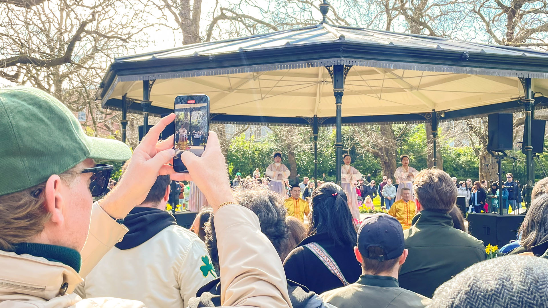 Dva ili tri sata prije početka parade, ljudi u zelenim majicama, zelenim šeširima ili dodacima za kosu su se u grupam pojavili a s obje strane ulice. Neki gledaoci su bili voljni doći ranije, u prostor gdje se parada priprema, kako bi kratko zavirili.