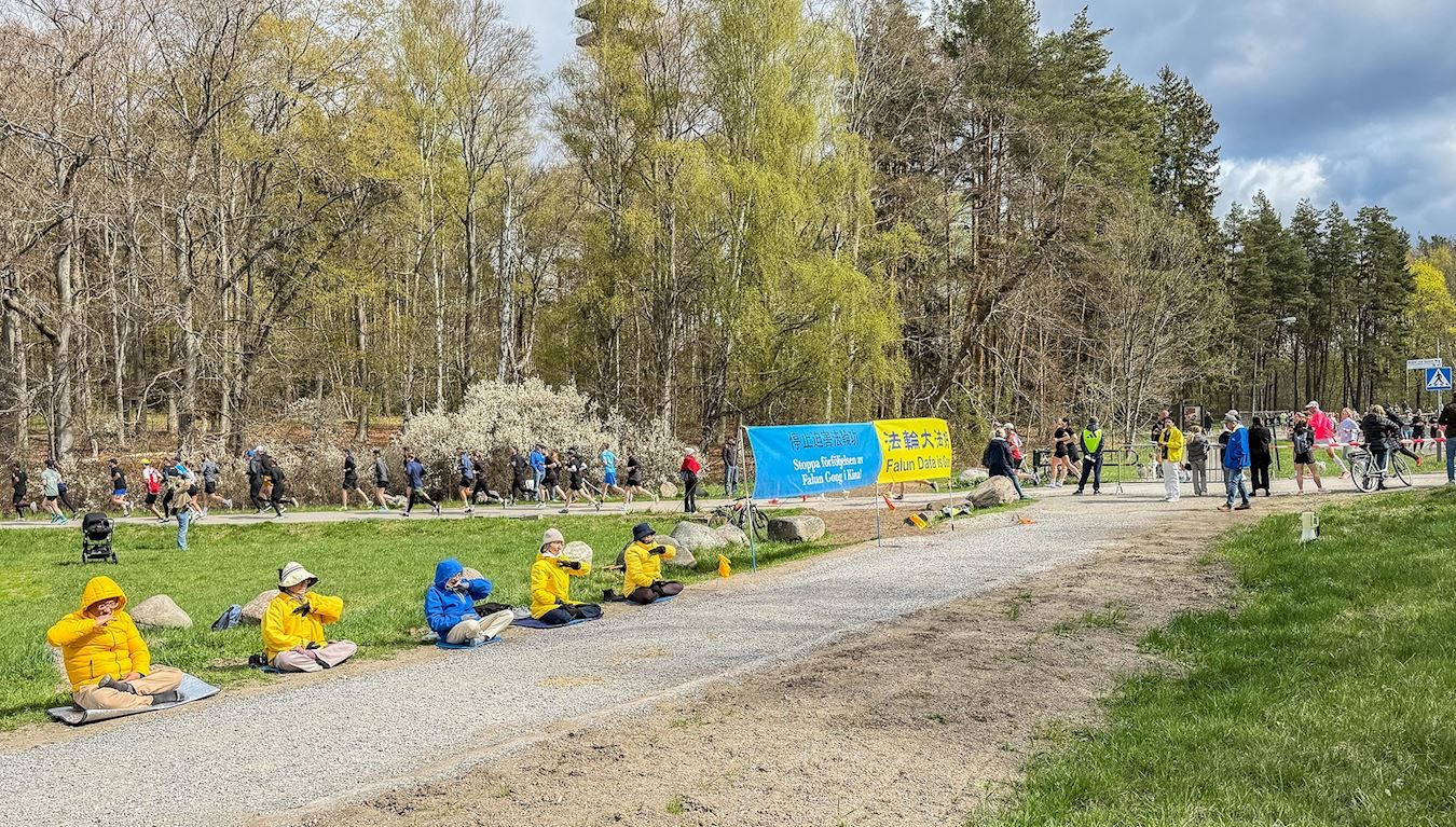 Tog se dana u Stockholmu održavao Adidasov polumaraton, a trkači su prolazili pored aktivnosti praktikanata. Kad su vidjeli upečatljive transparente i mirne grupne vježbe, mnogi su trkači podigli ruke i pokazali palac gore ili mahali dok su trčali.