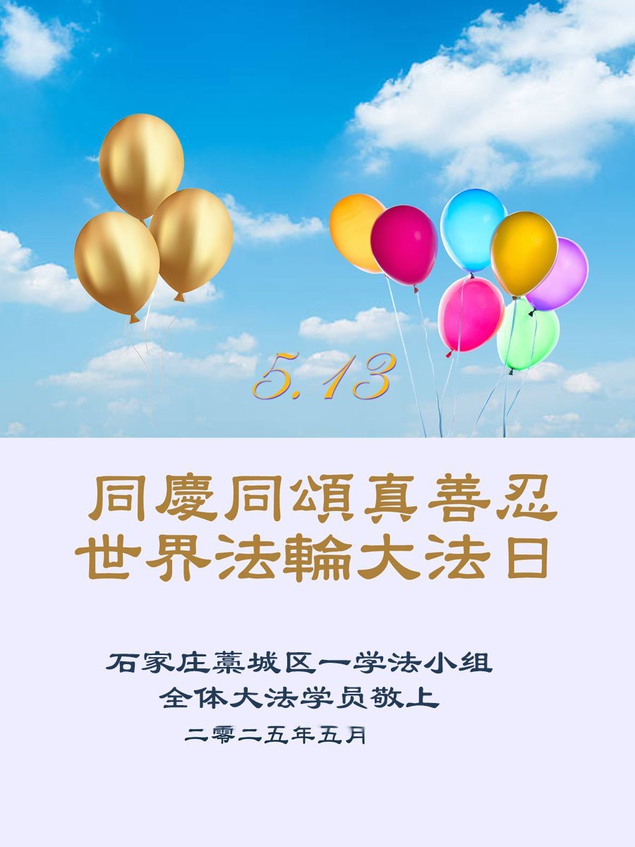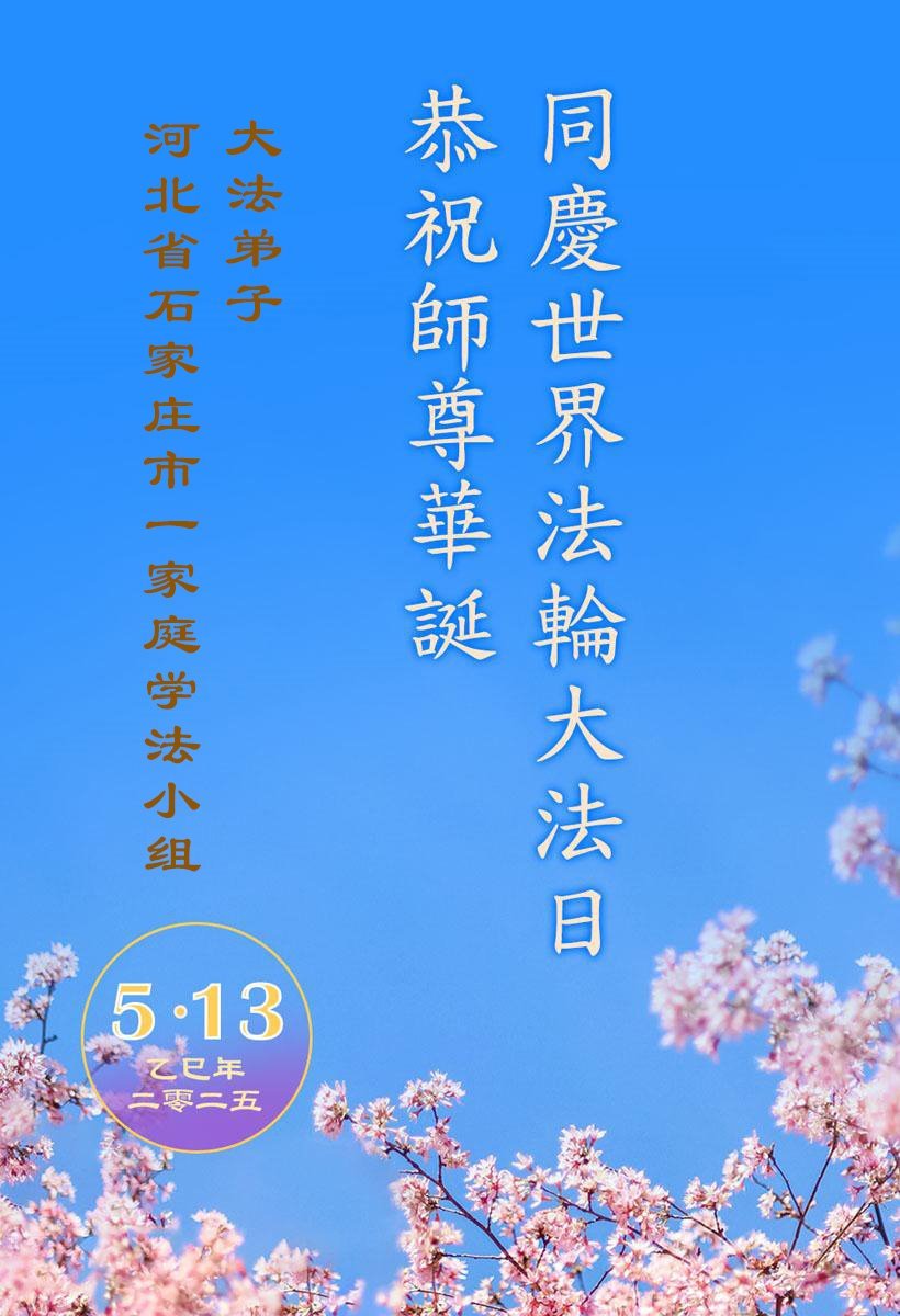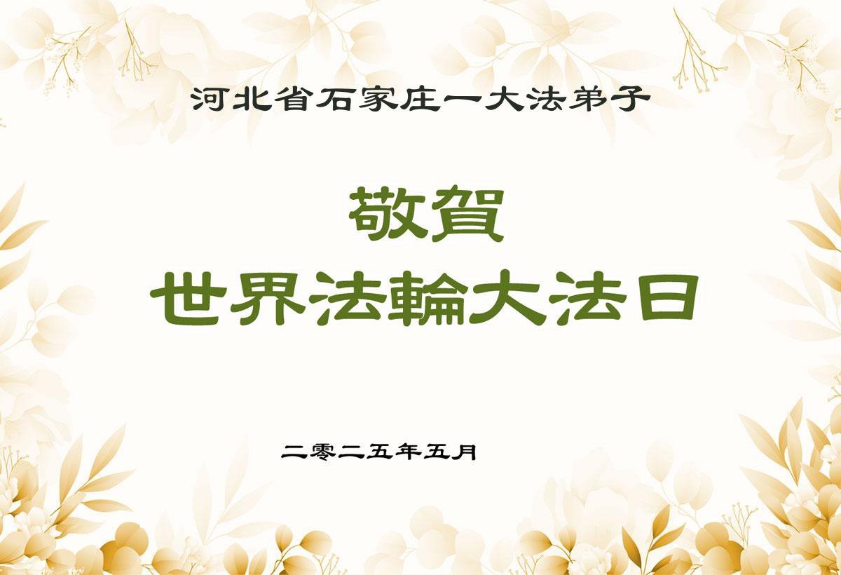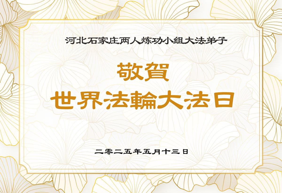 U ovom izveštaju predstavljamo izbor od 19 čestitki koje su poslali praktikanti Falun Dafe iz grada Šiđadžuang, provincija Hebej, Kina, povodom proslave posebnog događaja 13. maja 2025. godine: 26. Svetskog dana Falun Dafe i rođendana Učitelja Li Hongdžija.