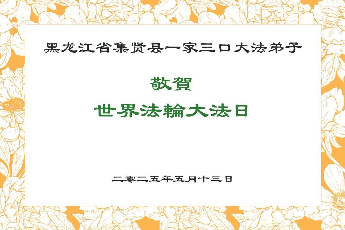 U ovom izveštaju predstavljamo izbor od 18 čestitki koje su poslali praktikanti Falun Dafe iz provincije Hejlungđang, Kina, povodom proslave posebnog događaja 13. maja 2025. godine: 26. Svetskog dana Falun Dafe i rođendana Učitelja Li Hongdžija.