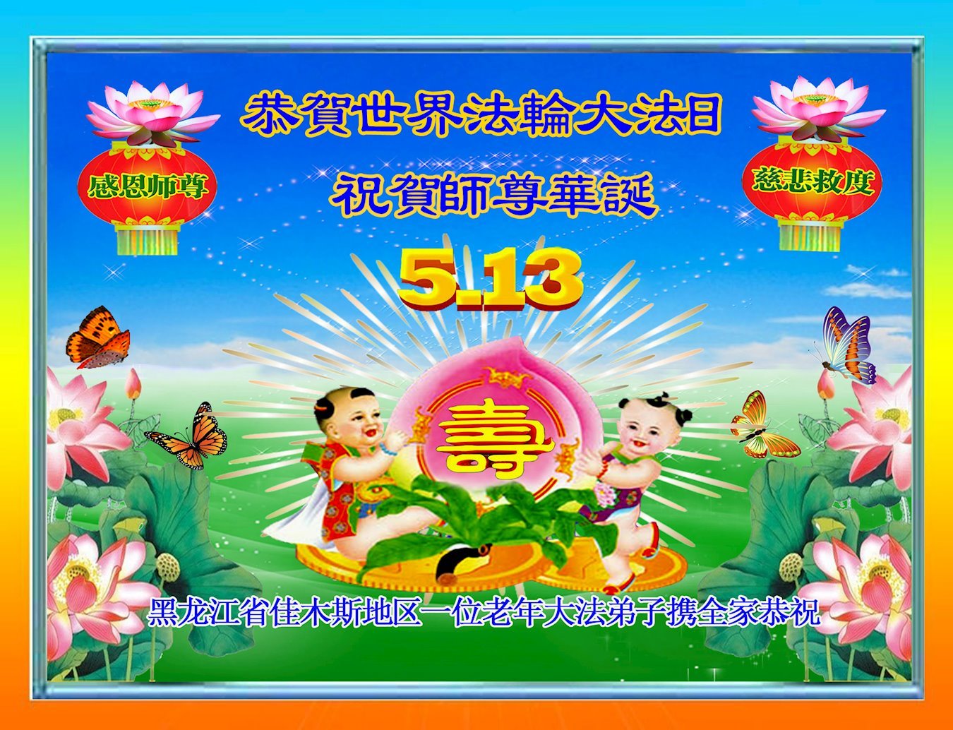 Praktikanti izražavaju svoju beskrajnu zahvalnost Učitelju Liju što je 1992. godine predstavio Falun Dafa javnosti te što ih vodi i štiti na njihovom putu kultivacije. Čestitaju Učitelju Liju sretan rođendan i obećaju da će se čvrsto kultivirati te probuditi savjest još većeg broja ljudi kako bi bili dostojni Učiteljevog mukotrpnog spasenja.