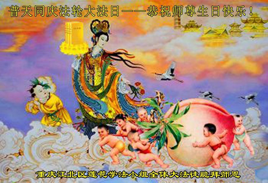 Falun Dafa praktičari iz Čongkinga žele poštovanom Učitelju srećan rođendan i proslavljaju Svetski dan Falun Dafe