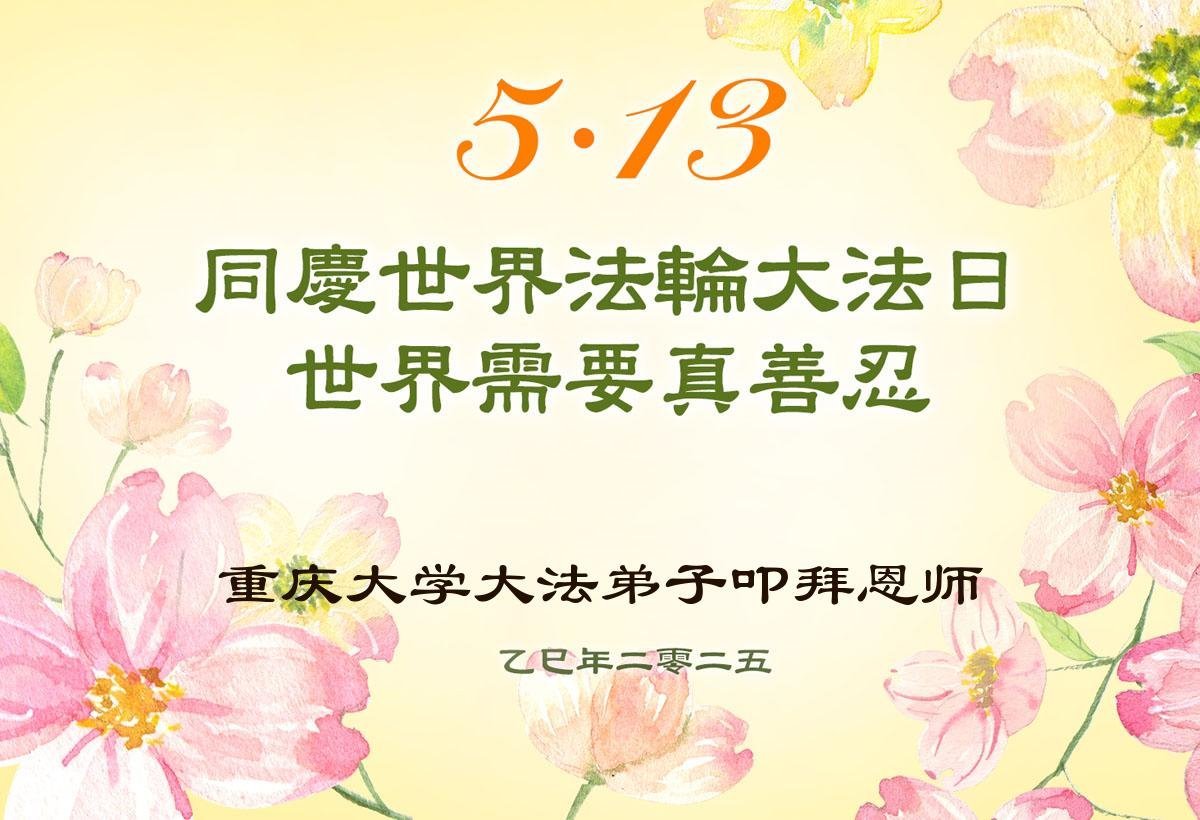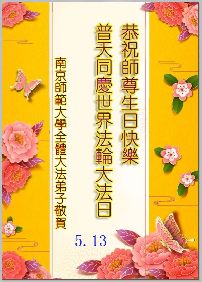 Na ovaj Svetski dan Falun Dafe, 33. godišnjicu od predstavljanja ove prakse javnosti, praktikanti iz 31 provincije, opštine i autonomne regije slave jubilej. Zahvalni su što su Dafa praktikanti; zahvaljuju Učitelju Li Hongdžiju, osnivaču prakse, što ih je vodio tokom ovih godina i žele mu srećan rođendan.