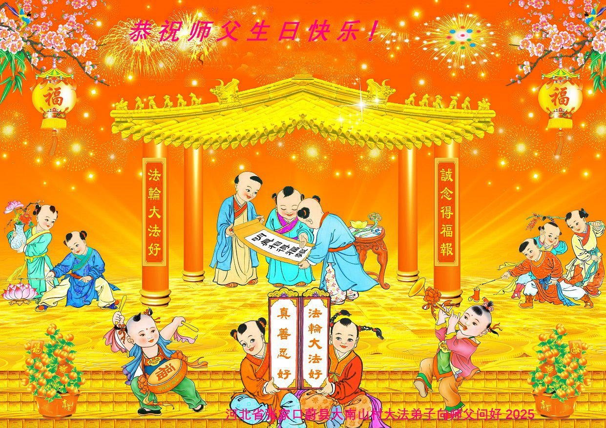 Praktikanti iz okruga Đianping, provincija Liaoning, napisali su u svojoj čestitki poslatoj Minghuiju: „Hvala vam, Učitelju Li, što snas učite principima Istinitosti-Blagosti-Trpeljivosti. Brinete se o nama na svakom koraku. Naša zahvalnost je neopisiva i bićemo sve bolji i bolji na našim putovanjima kultivacije.“