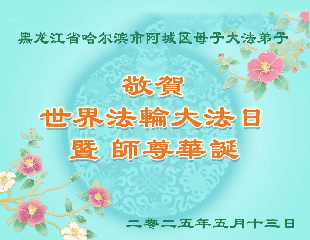 Falun Dafa praktikanti iz provincije Hejlungđang žele poštovanom Učitelju srećan rođendan i proslavljaju Svetski dan Falun Dafe!